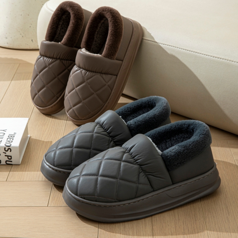 特大码PU防水秋冬季包跟棉鞋男士居家室内厚底加肥加宽防滑棉拖鞋,浙江 宁波