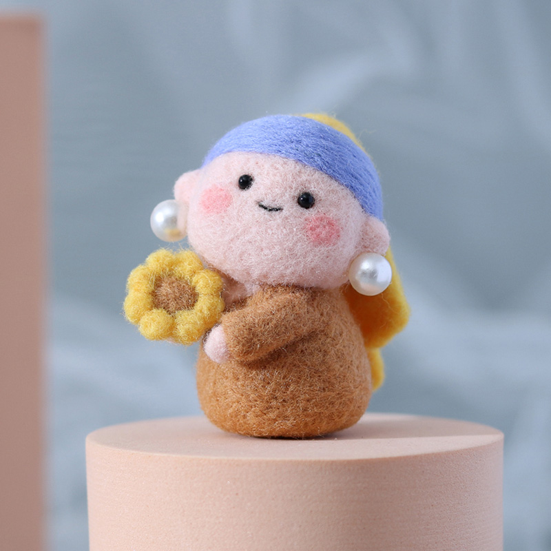 戳戳乐羊毛毡diy材料包手工制作礼物 带珍珠耳环的少女钥匙扣挂件