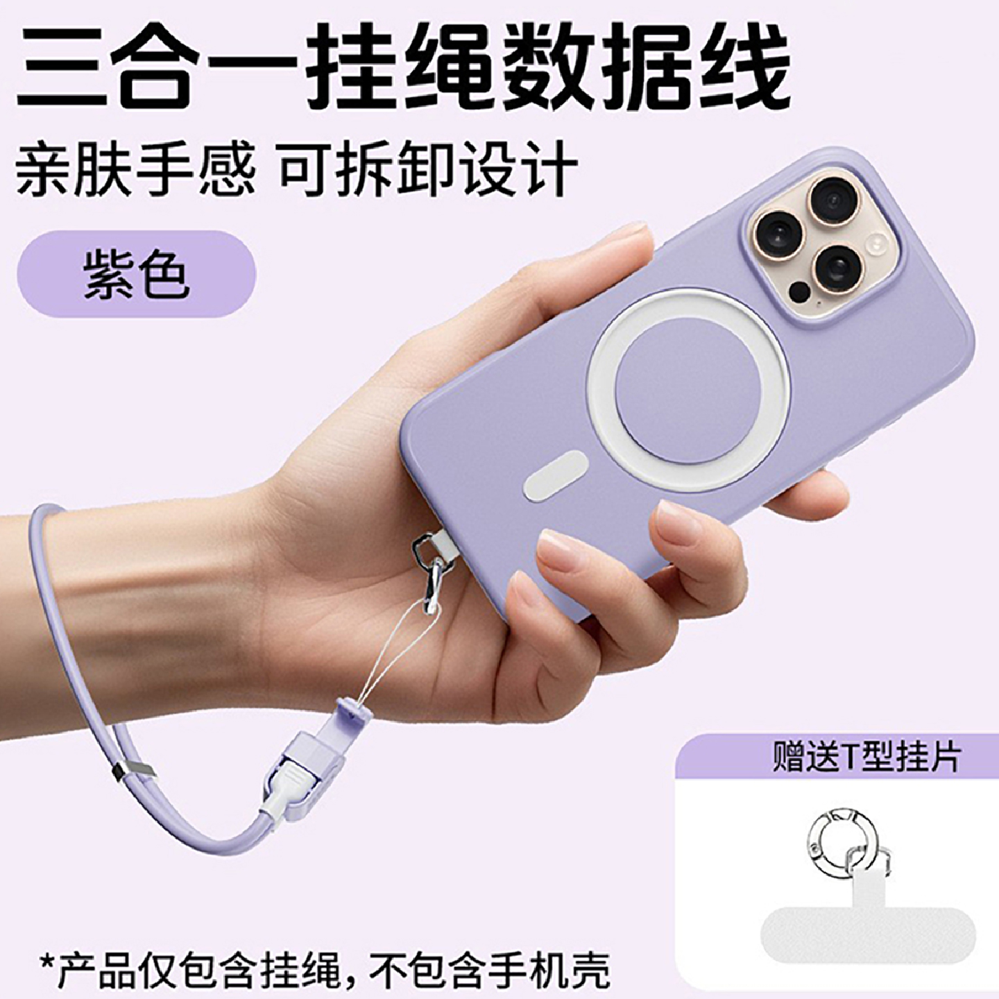 挂绳充电线新款三合一手机挂绳支架充电线PD65W编织快充亲肤软硅胶便捷式数据线适用苹果华为等手机数据线