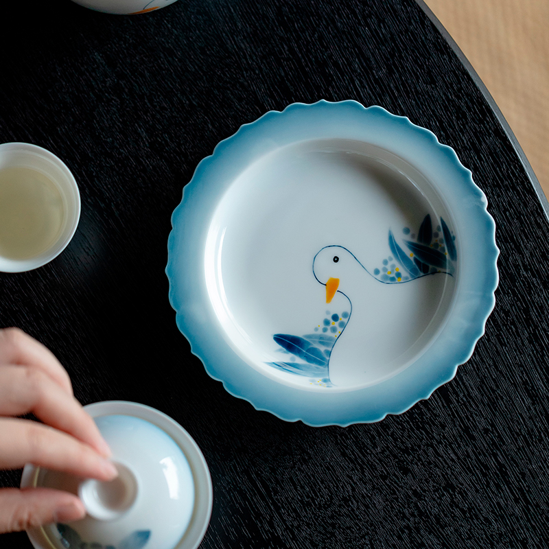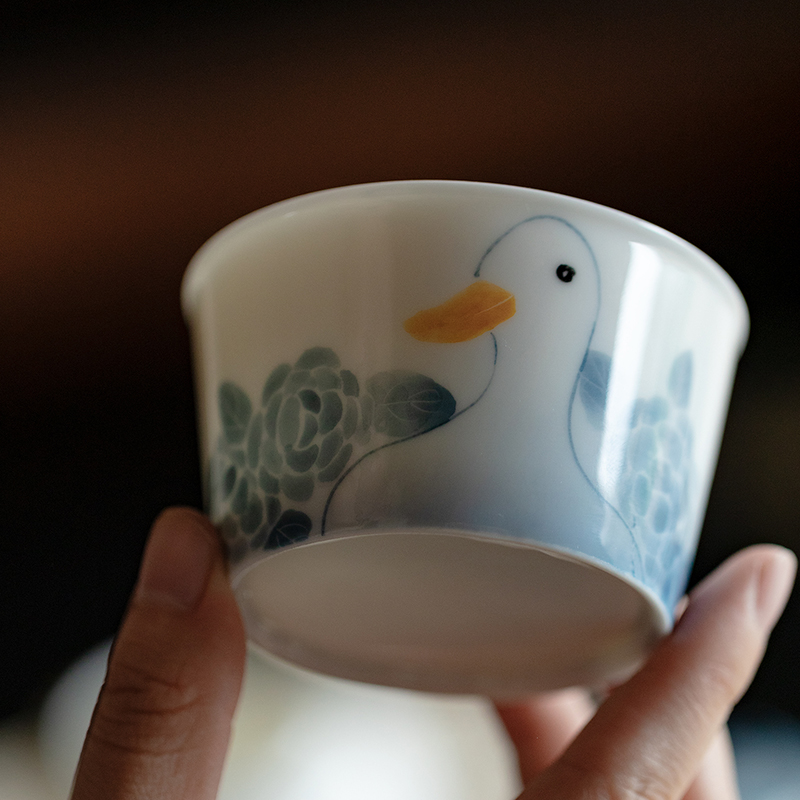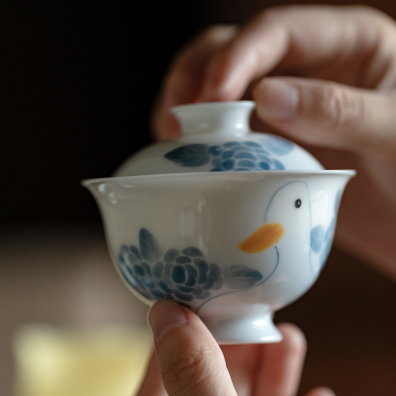 梵汝 原创小众高端手绘鸭子盖碗功夫茶具套装茶杯壶承主人杯套组,福建 泉州