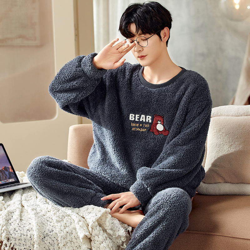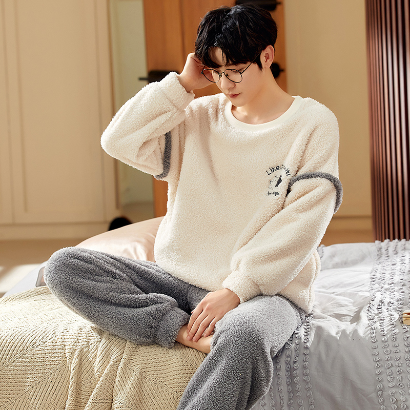 秋冬款中学生睡衣睡裤男毛毛珊瑚绒初中生圆领套头冬天青少年冬季,广东 汕头