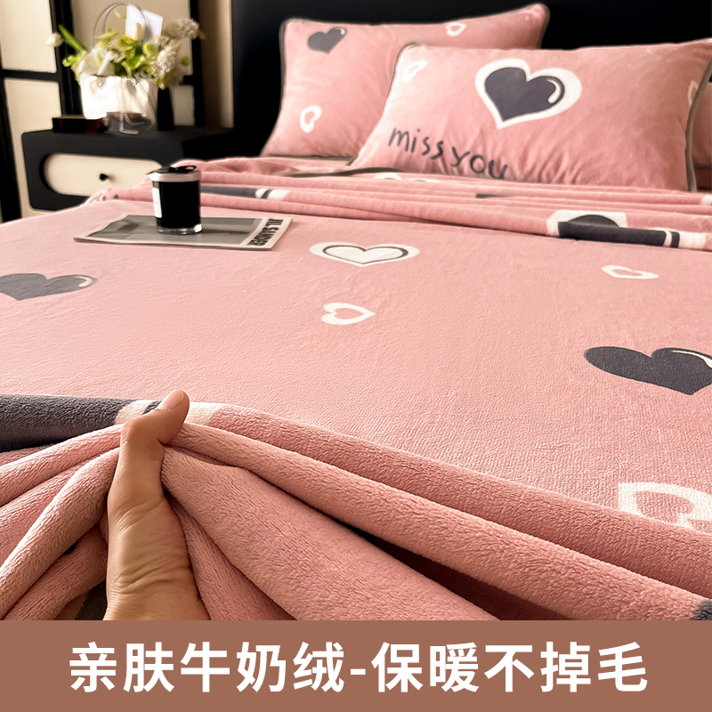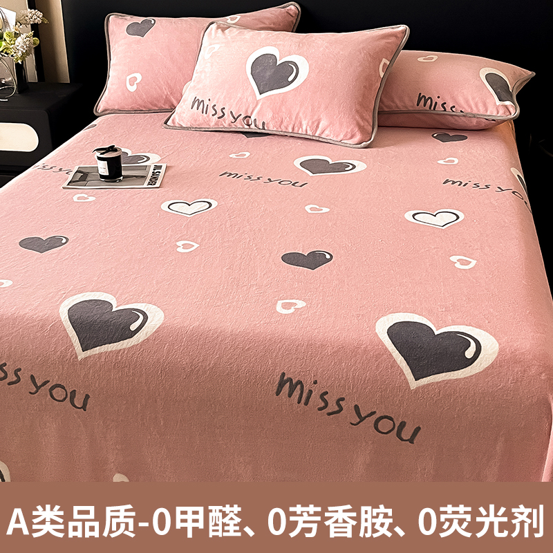 牛奶绒床单单件冬季法兰绒被单子冬天加绒加厚毛绒毯子牛奶绒毛毯