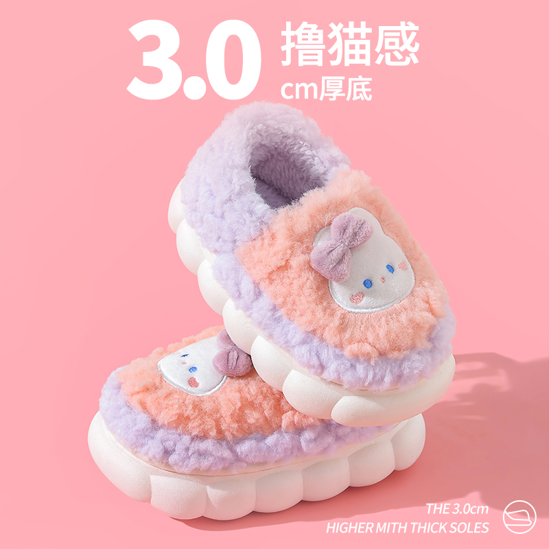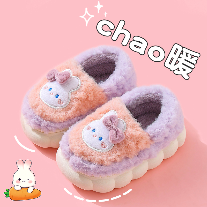 冬季儿童棉鞋包跟女童厚底防滑保暖中小童宝宝毛毛加绒居家棉拖鞋,浙江 金华