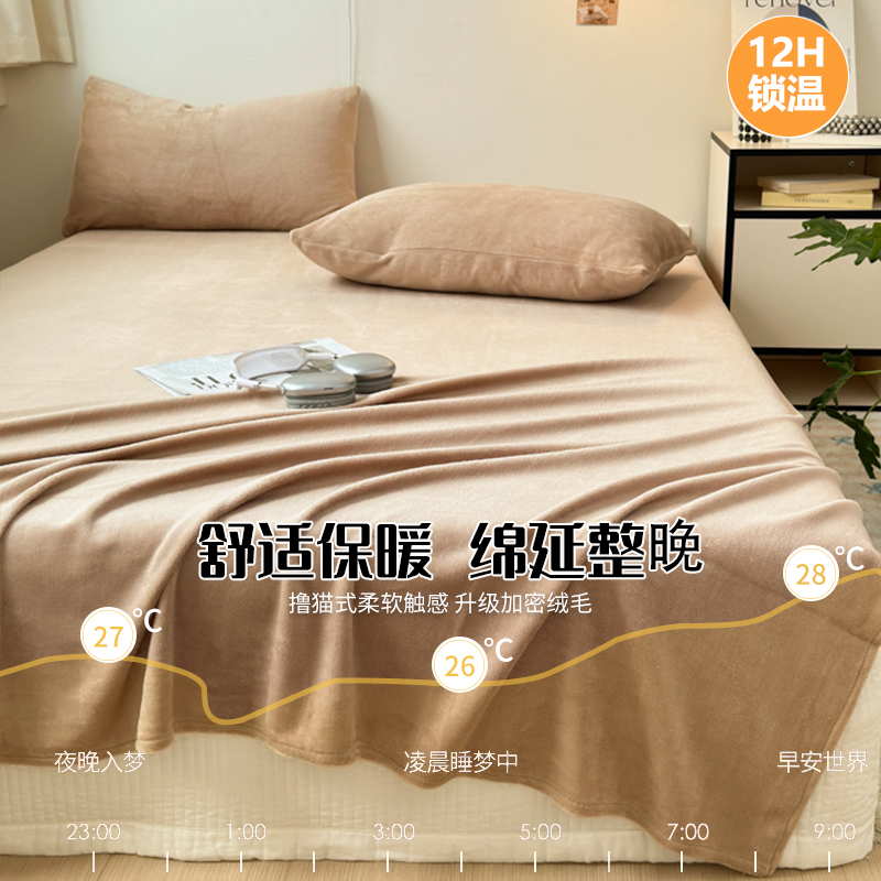 牛奶绒床单单件冬季加厚加绒珊瑚绒毛绒单人床单冬天宿舍毛毛绒毯