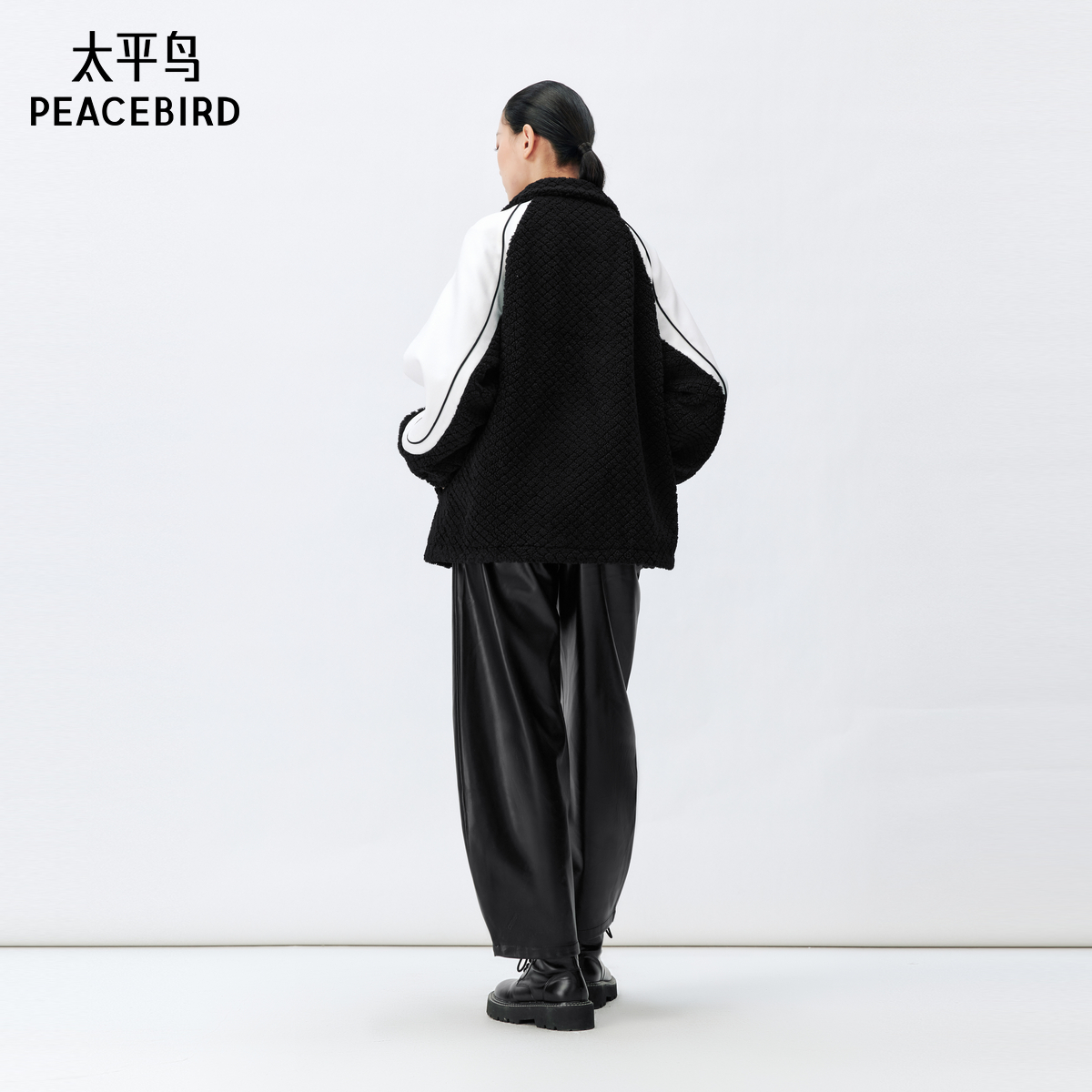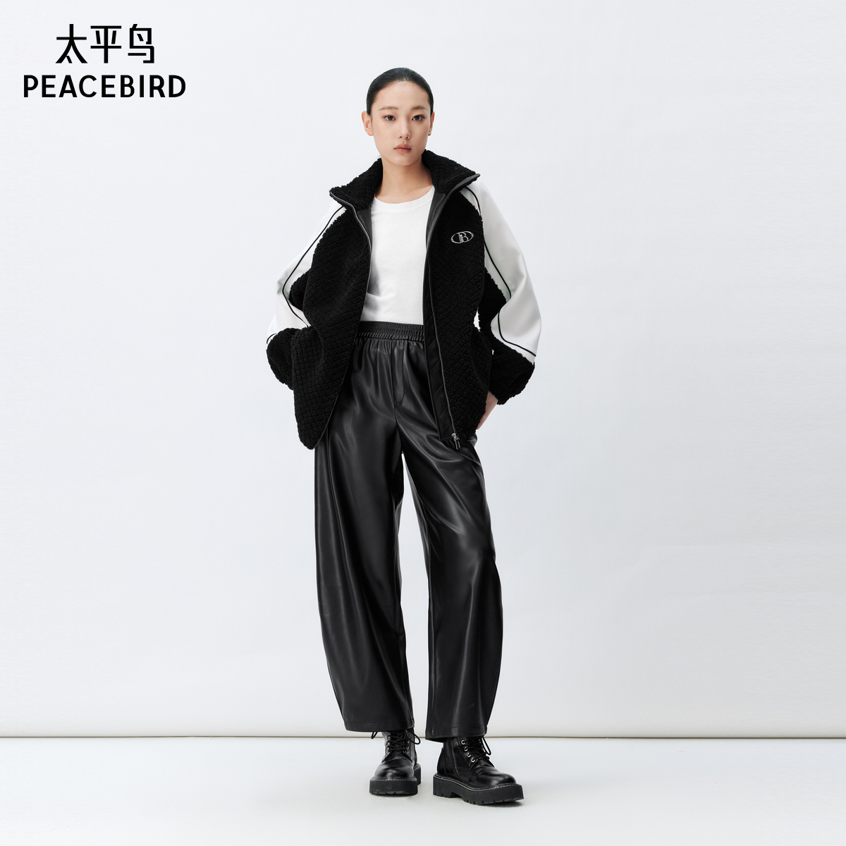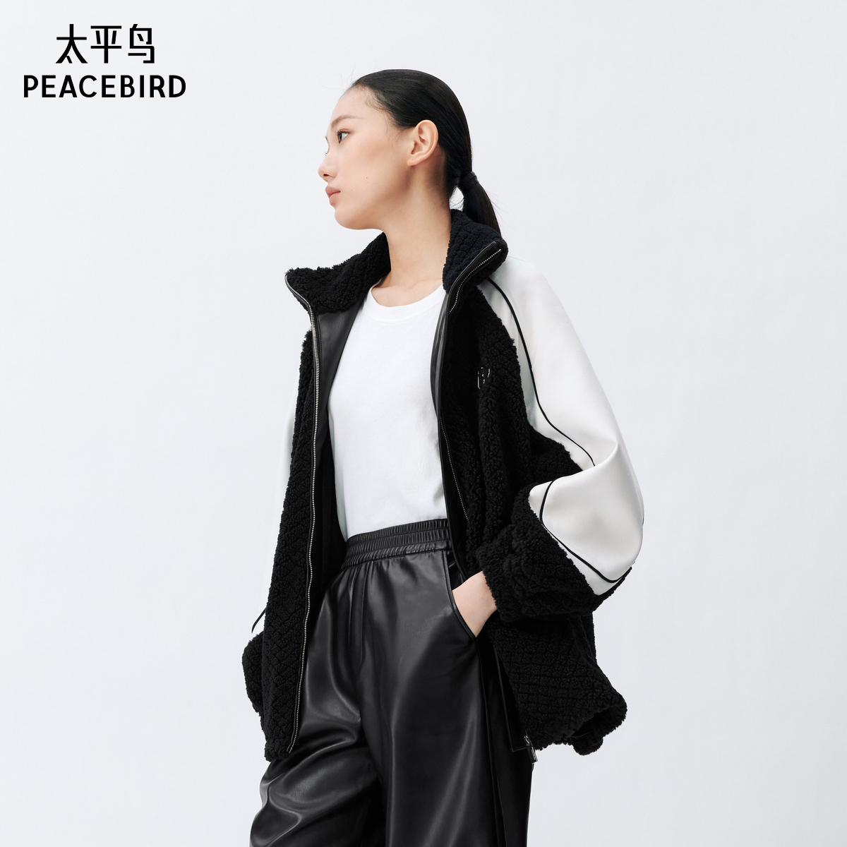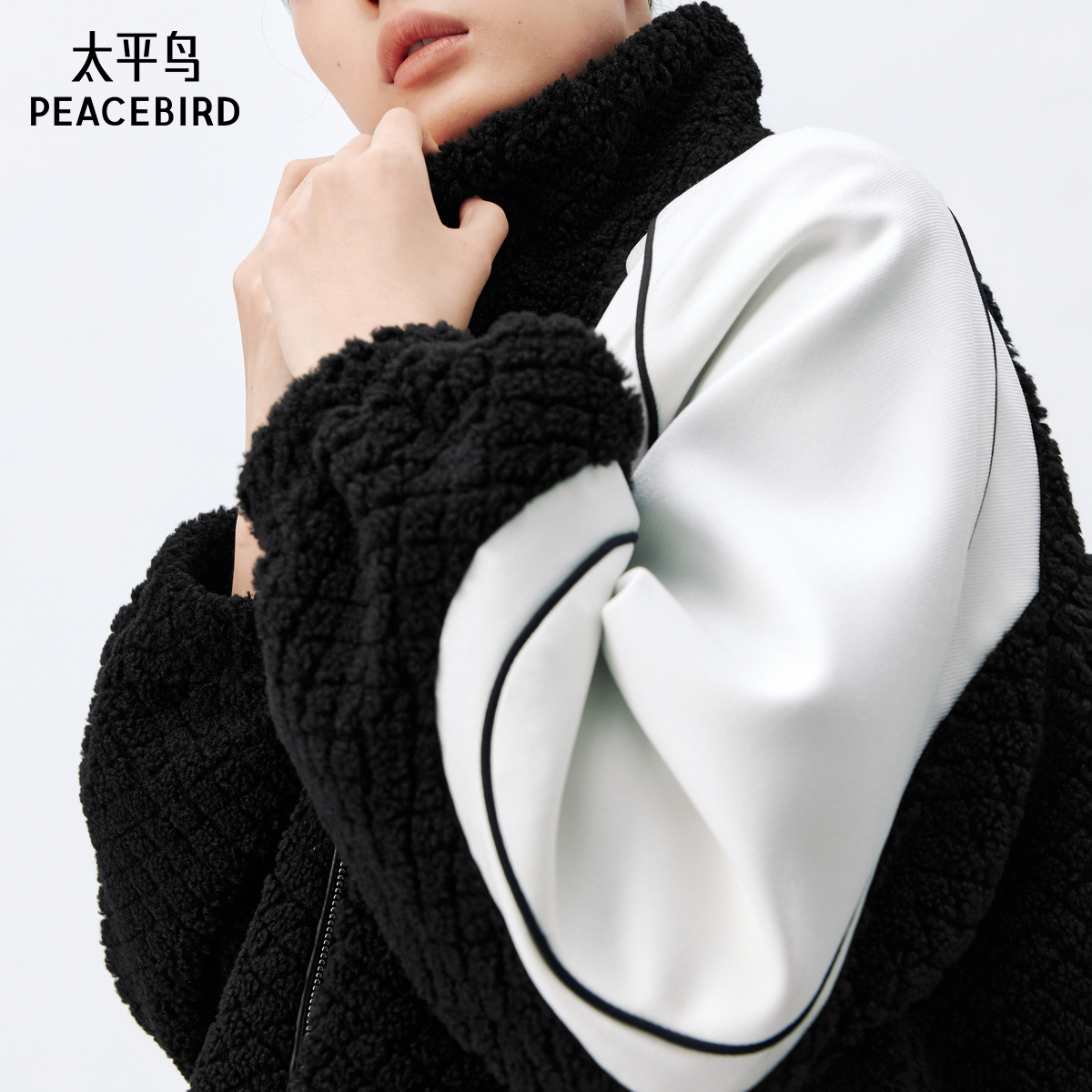 太平鸟女装年春季撞色仿羊羔毛外套A3BBE1113