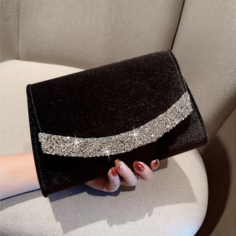 新款晚宴手拿包丝绒镶钻手拎包名嫒礼服晚装旗袍链条单肩斜挎女包,广东 潮州