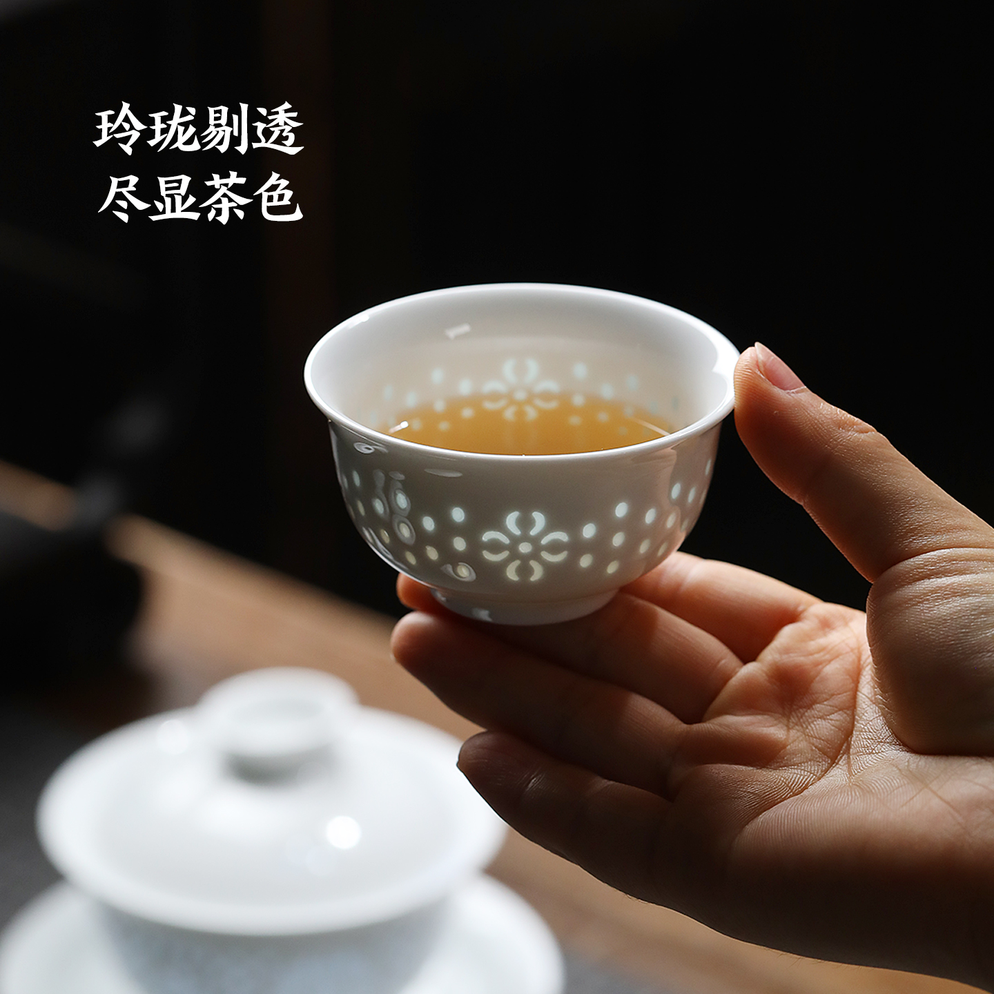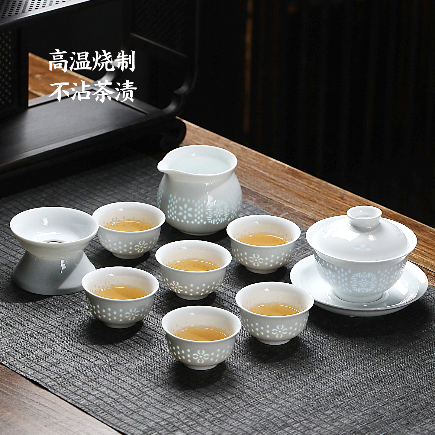 景德镇陶瓷玲珑瓷功夫茶具套装茶壶盖碗茶杯精致简约泡茶具礼盒装