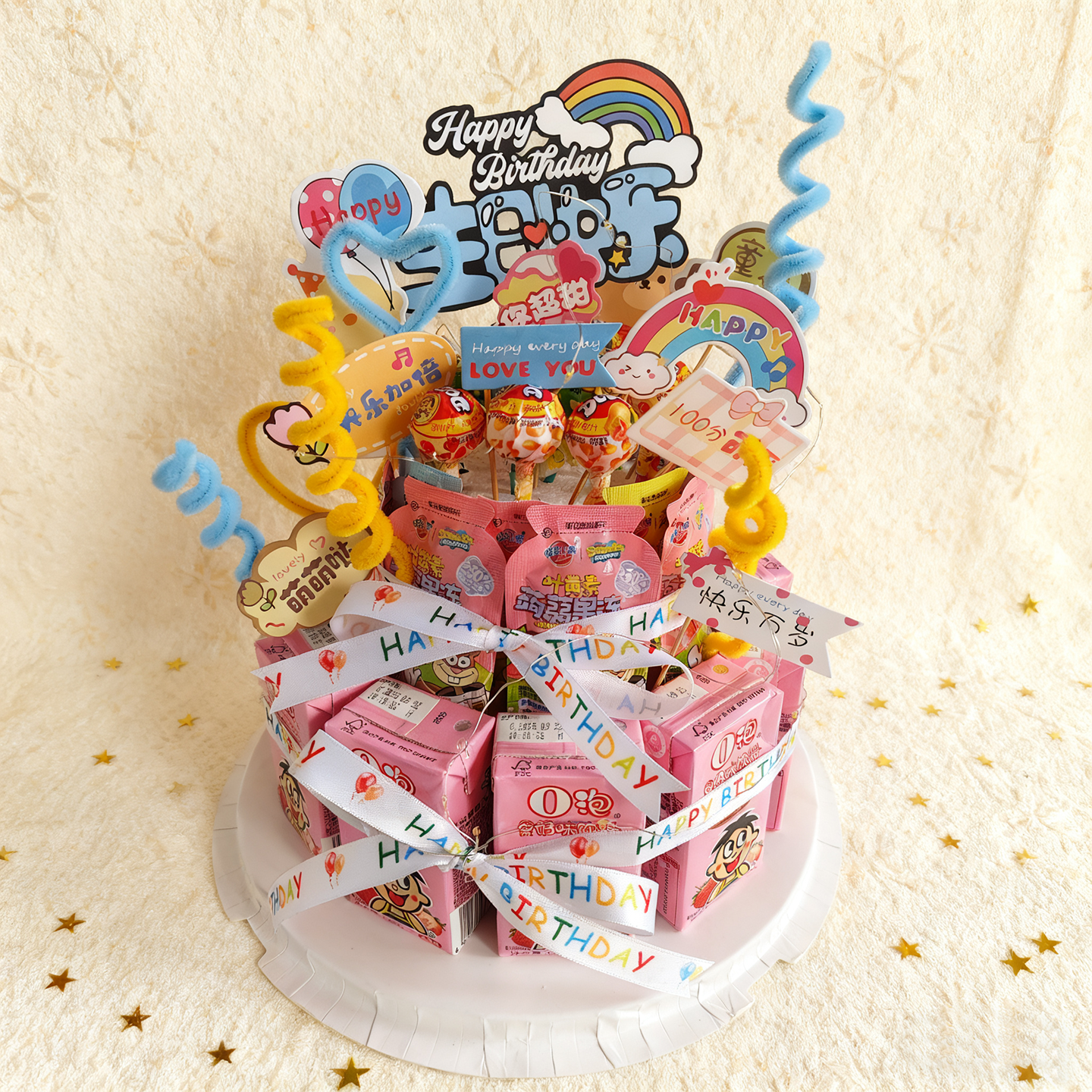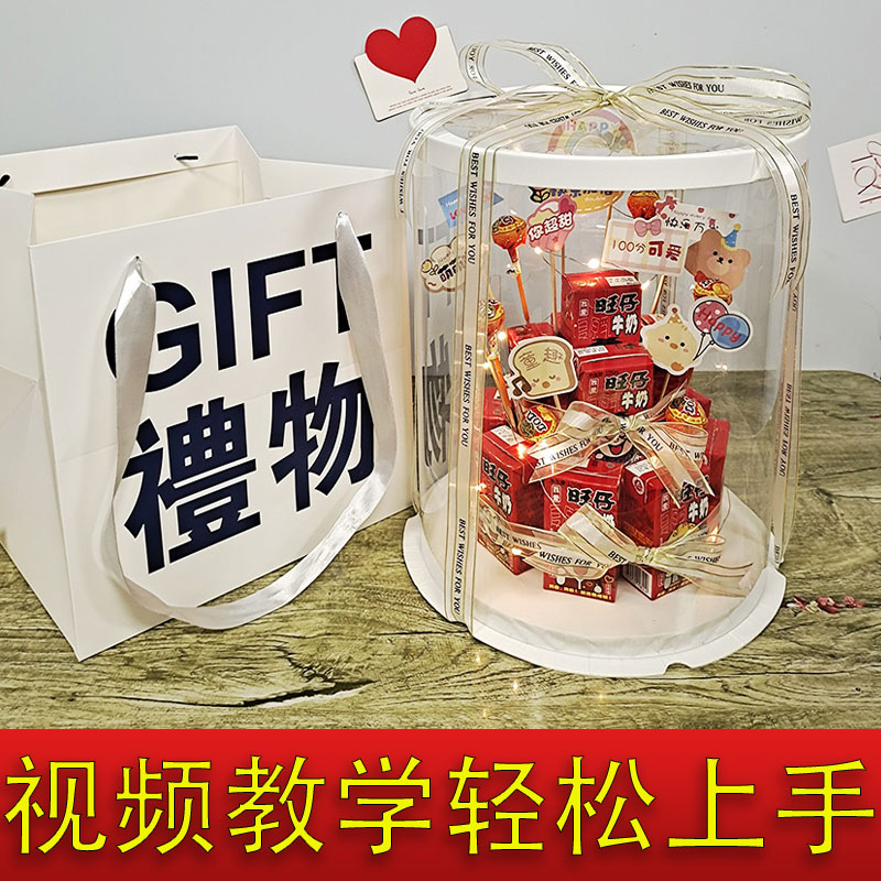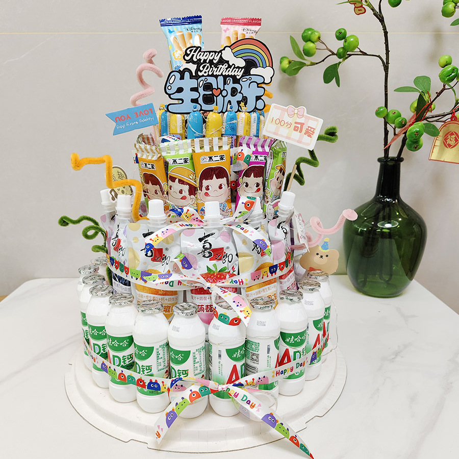儿童礼物生日零食旺仔牛奶花束制作材料包全套蛋糕礼盒diy全套