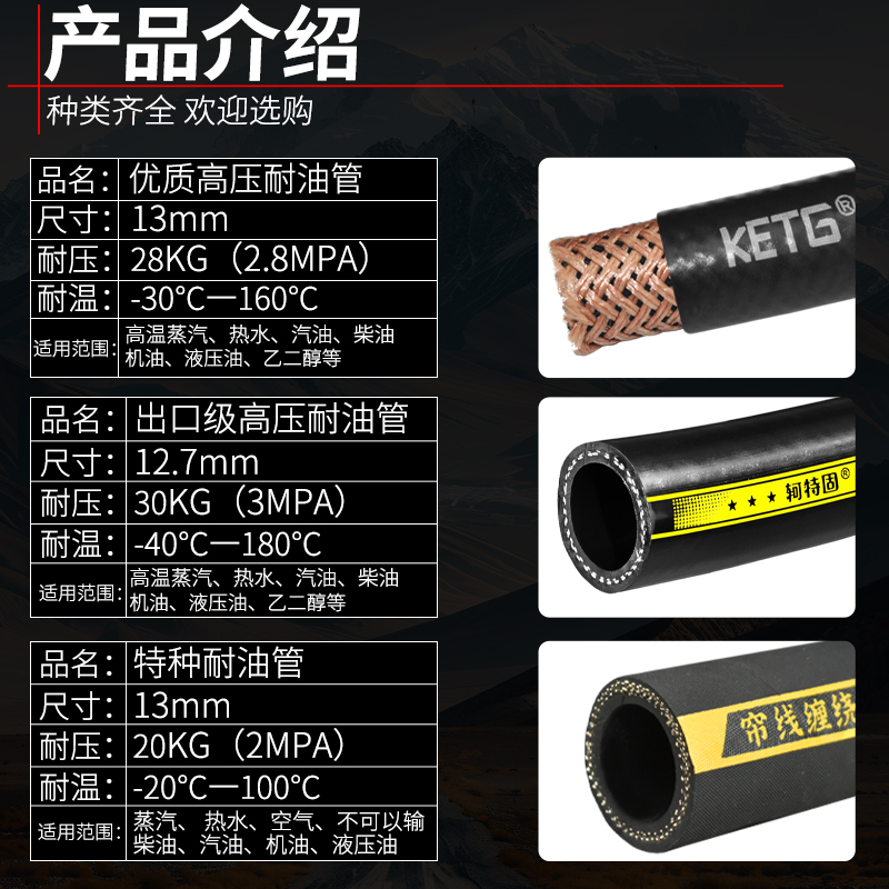 耐油汽油柴油管橡胶管耐热耐高温蒸汽管水管高压液压油管橡胶软管