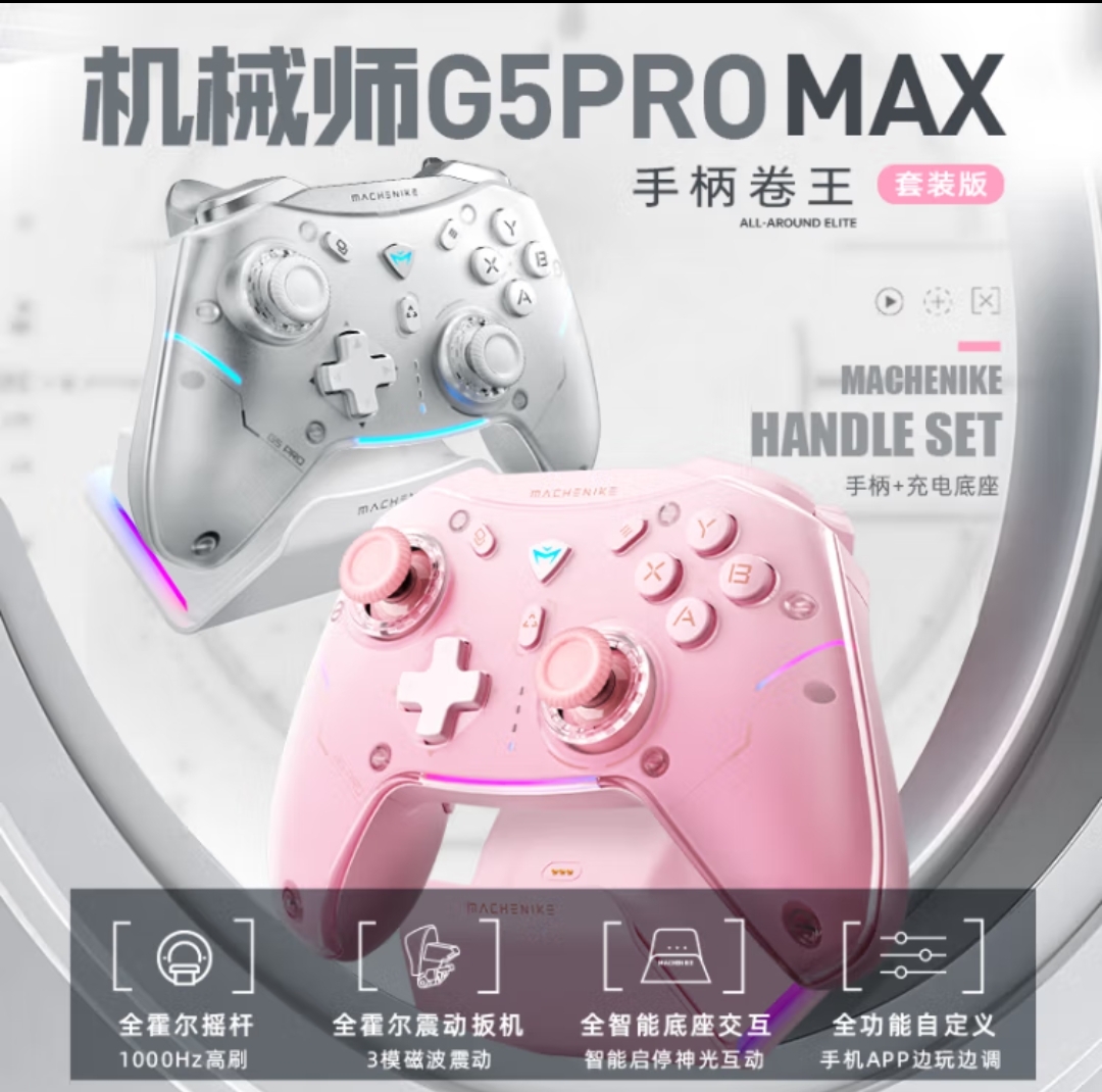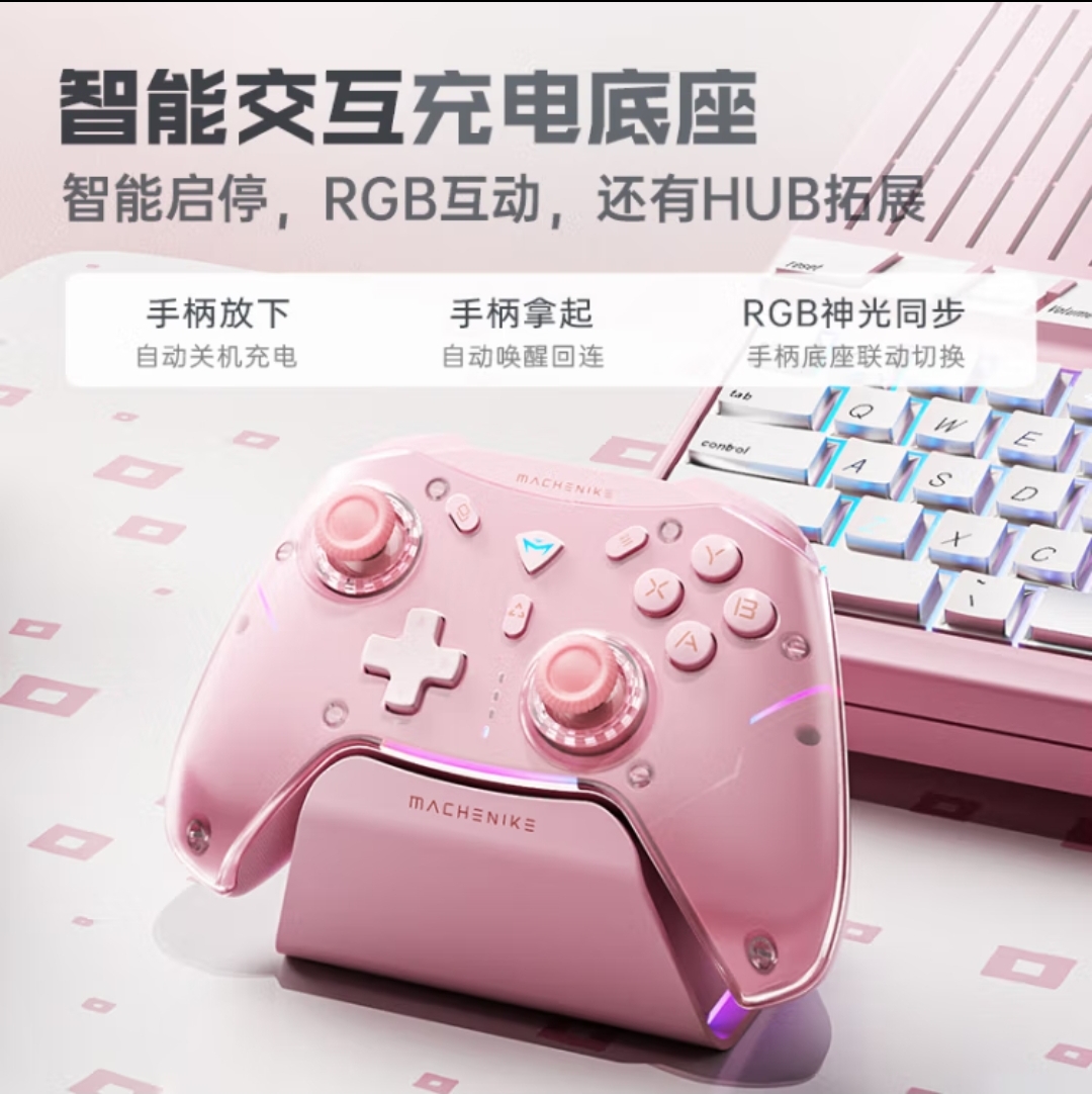 机械师G5proMAX无线蓝牙switch游戏手柄PC手机NS steam充电底座粉