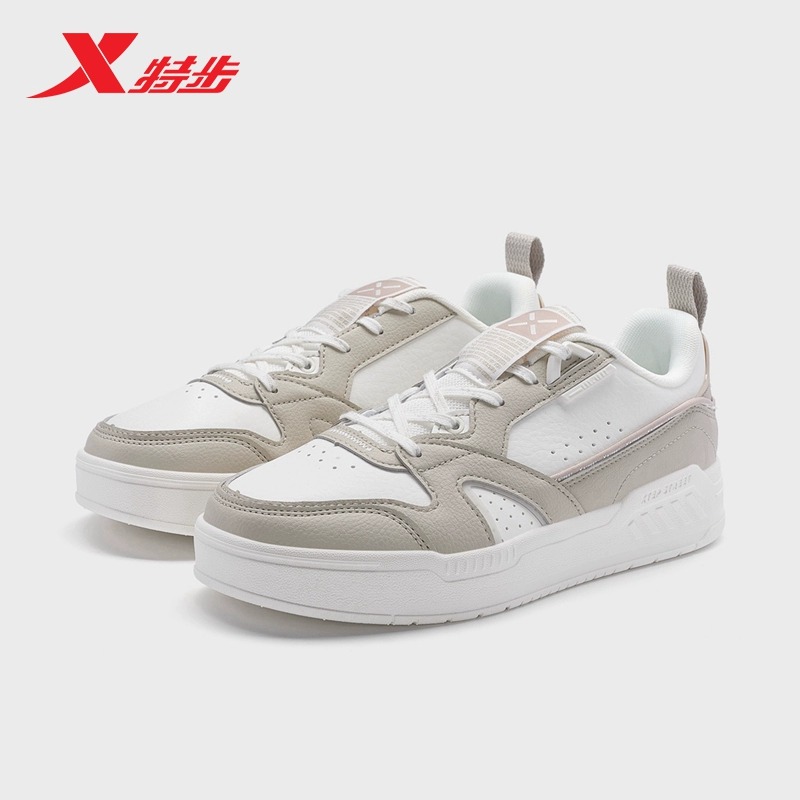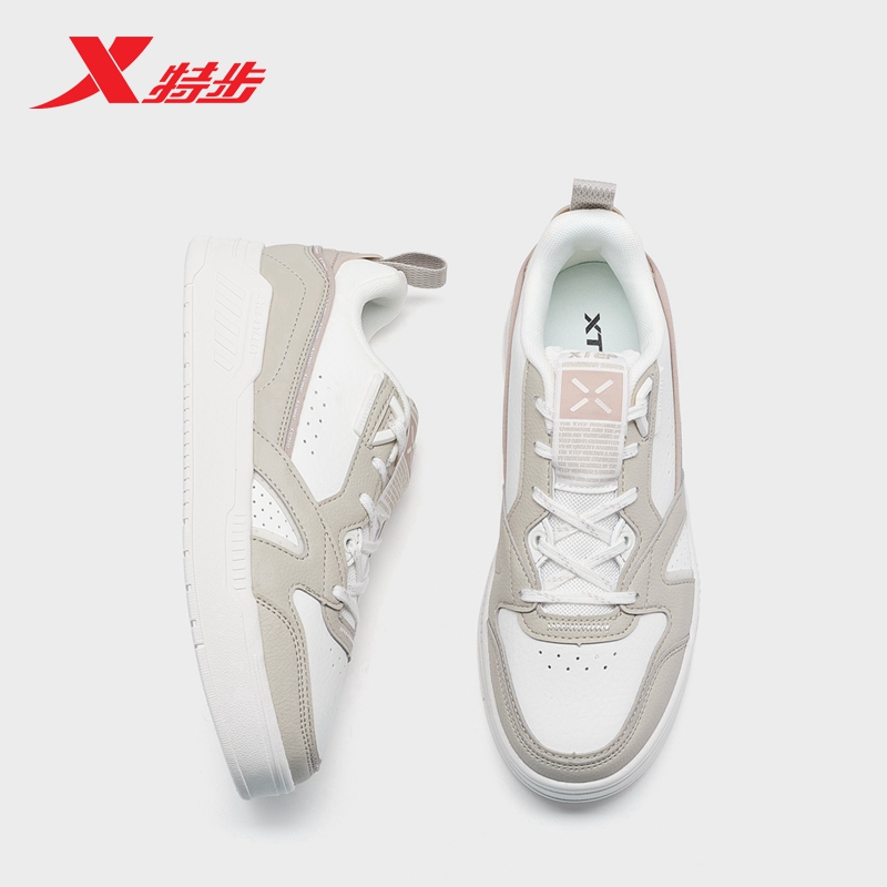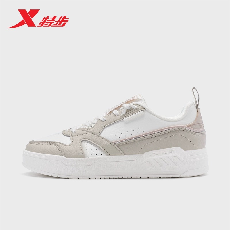 特步女鞋板鞋小黑鞋2023冬季新款正品皮面时尚百搭软底休闲运动鞋,浙江 湖州