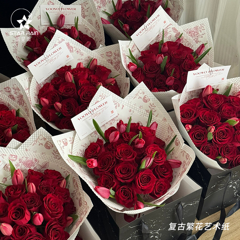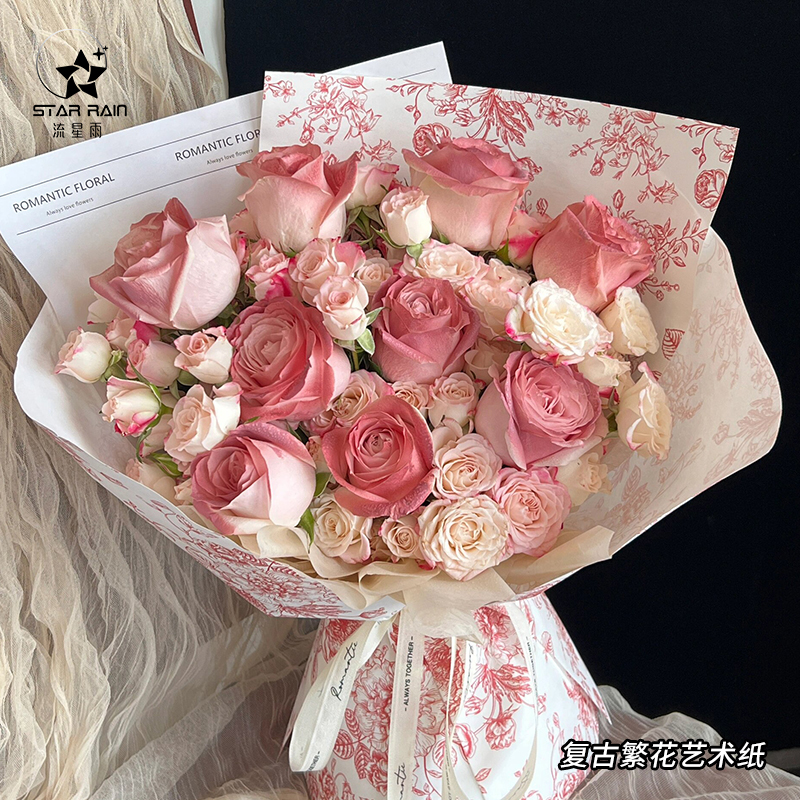 流星雨复古繁花艺术纸鲜花包装纸印花牛皮纸花束包花材料花艺资材
