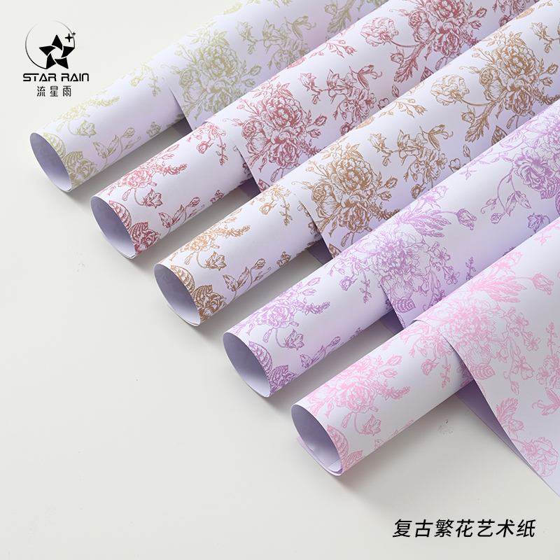 流星雨复古繁花艺术纸鲜花包装纸印花牛皮纸花束包花材料花艺资材,浙江 金华
