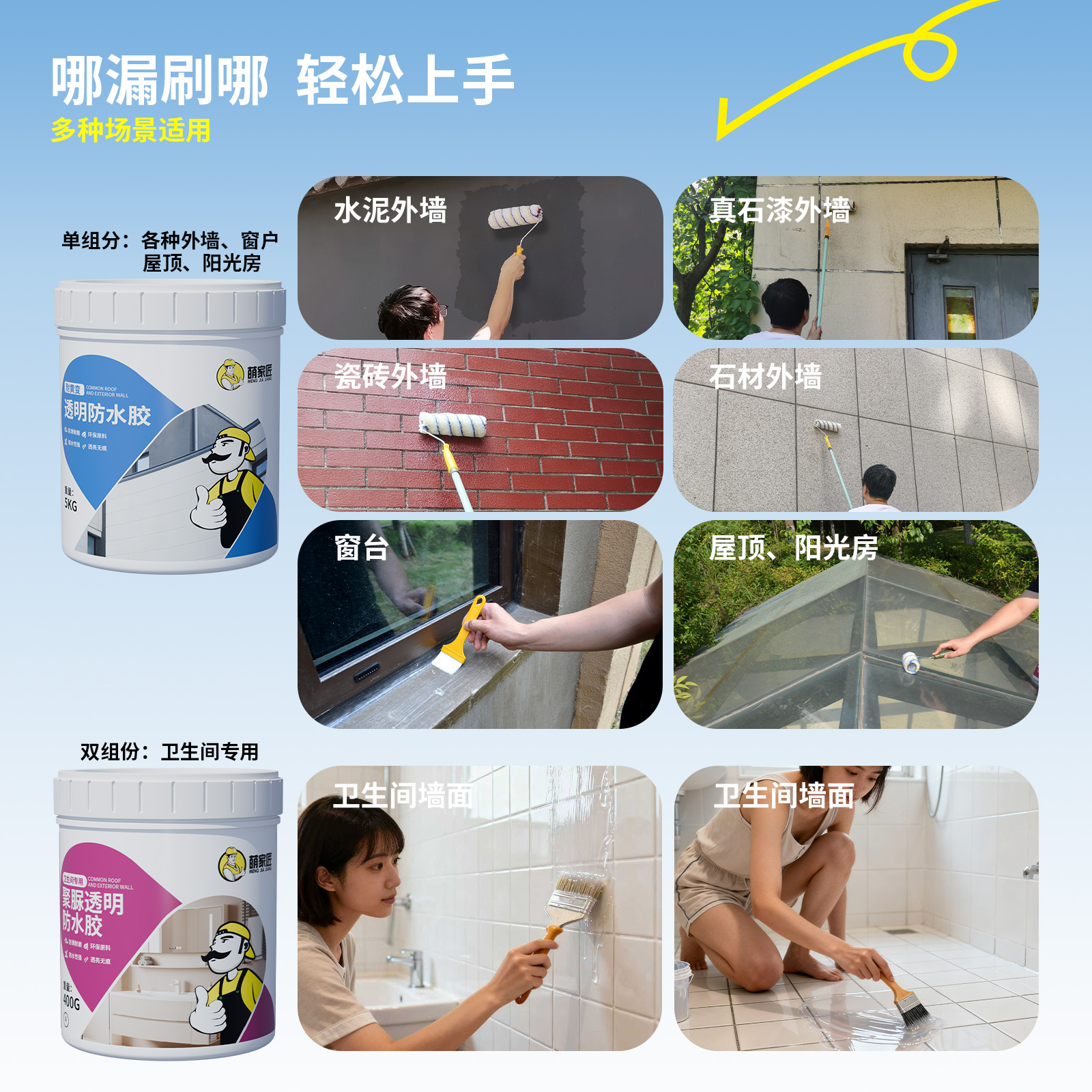 透明防水胶窗台外墙卫生间免砸屋顶防水补漏材料裂缝渗水专用涂料