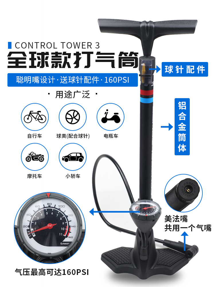 Giant捷安特打气筒自行车电动摩托车汽车高压家用气筒单车配件