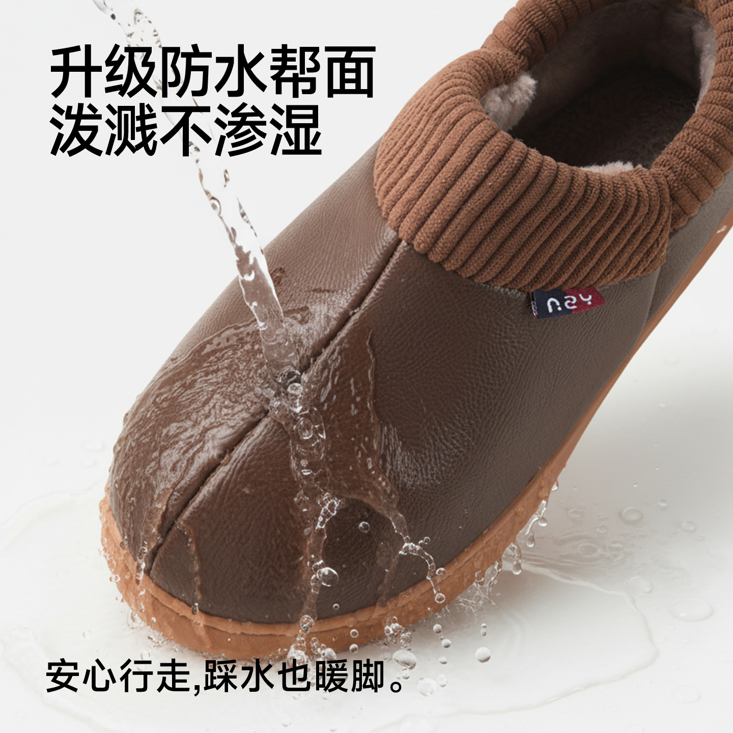 防水棉鞋男冬季新款居家室内加厚加绒保暖防滑中老年包跟棉拖鞋男