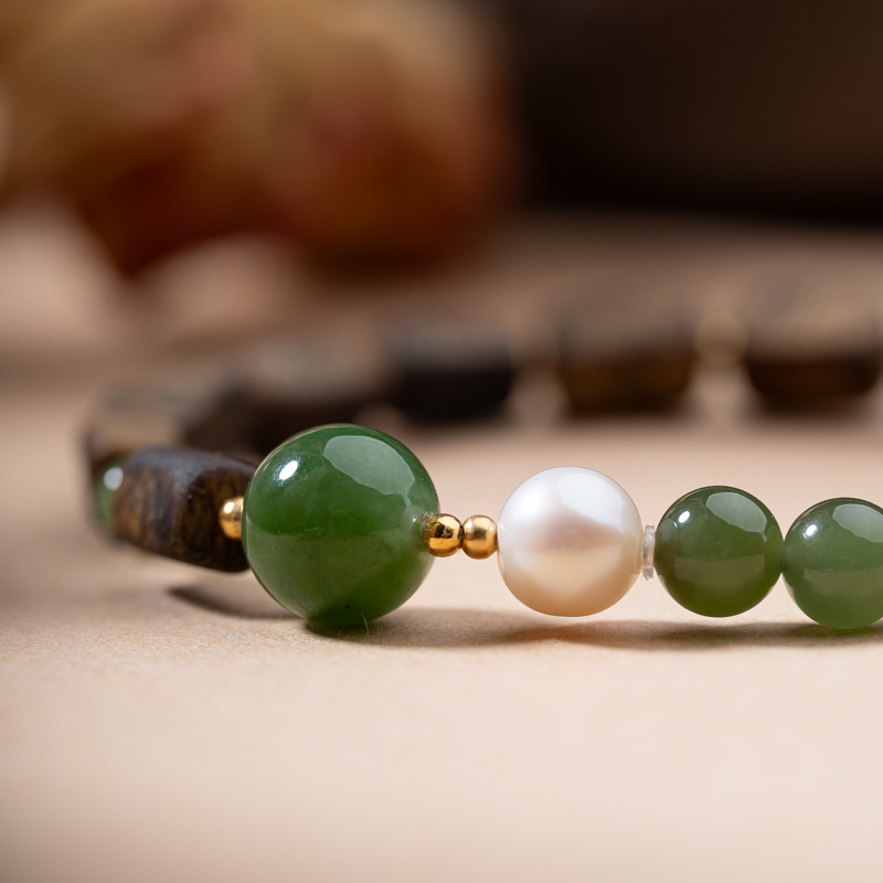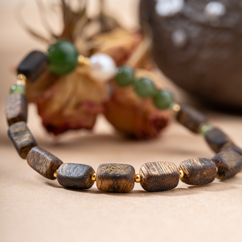 仙源莺歌绿奇楠沉香方珠和田玉碧玉手串多样性发其一