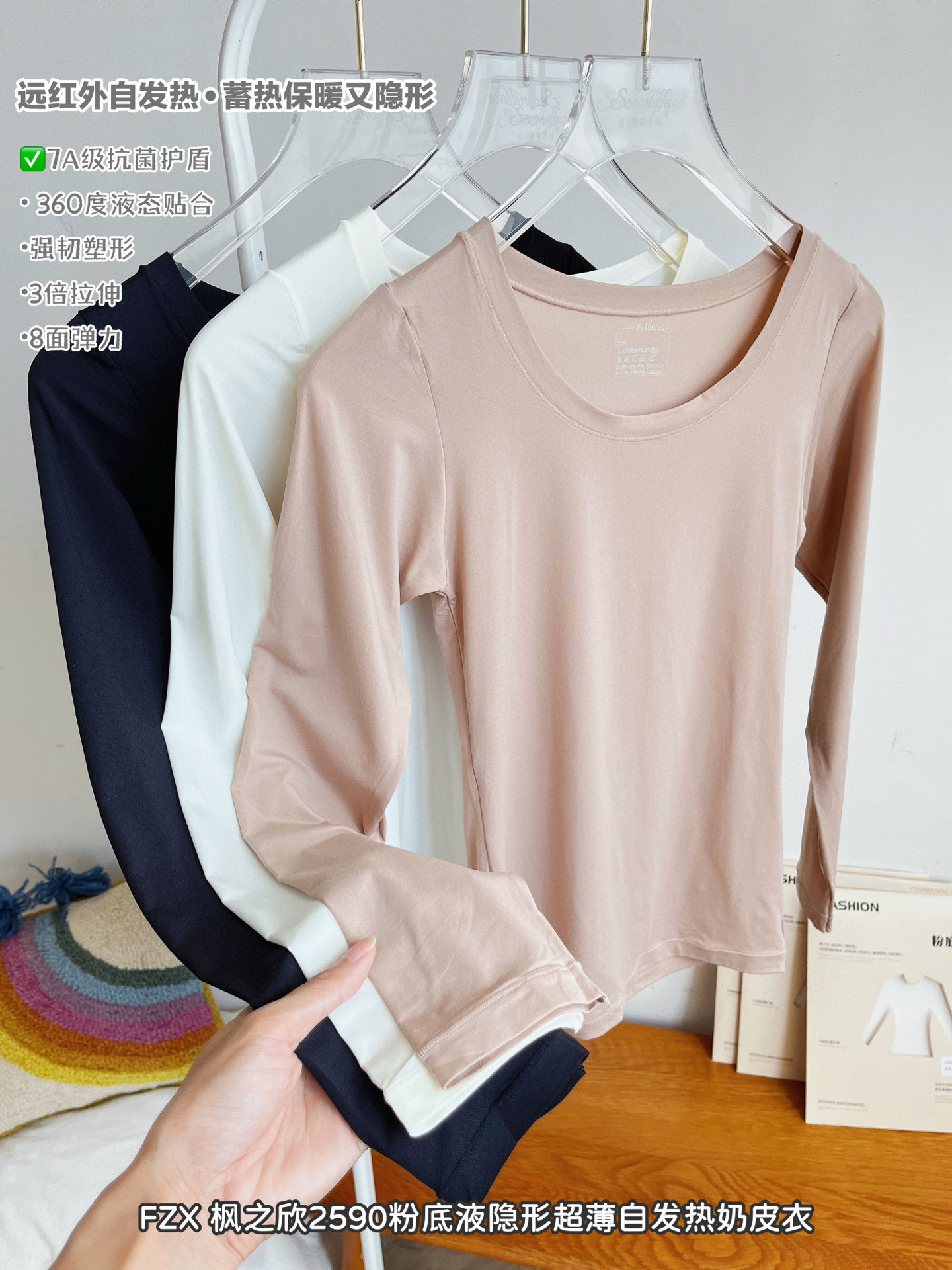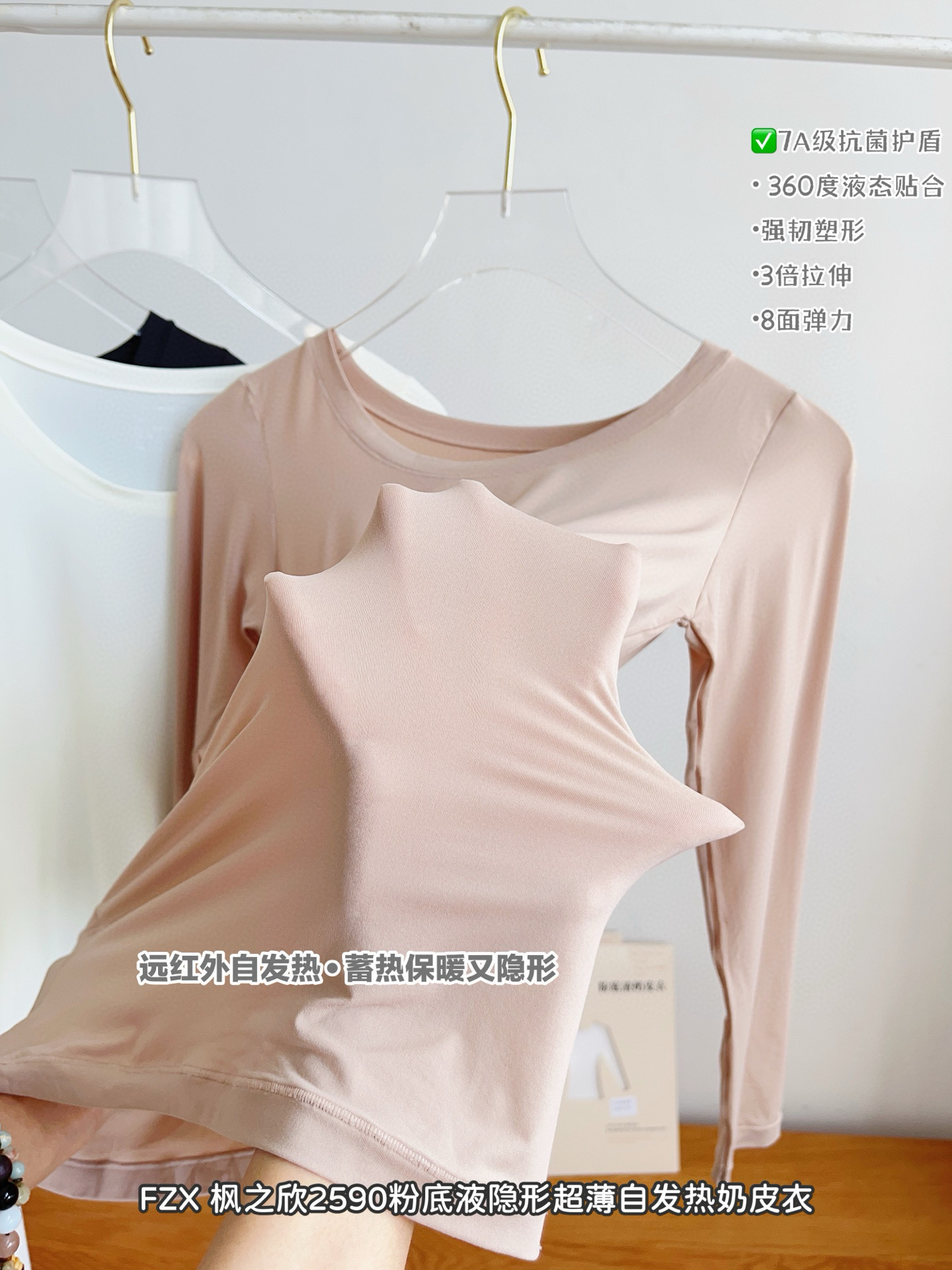 秋冬圆领保暖内衣女隐形修身显瘦高弹上衣超薄自发热奶皮肤衣内搭,浙江 金华