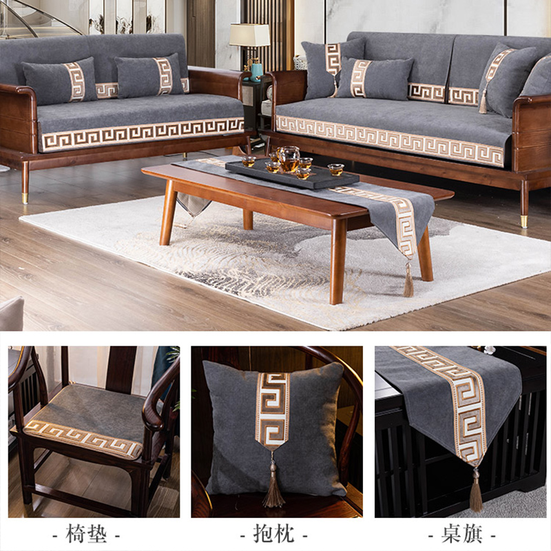 金柠檬居家布艺新中式沙发垫四季通用2025新款防滑雪尼尔实木套罩,上海