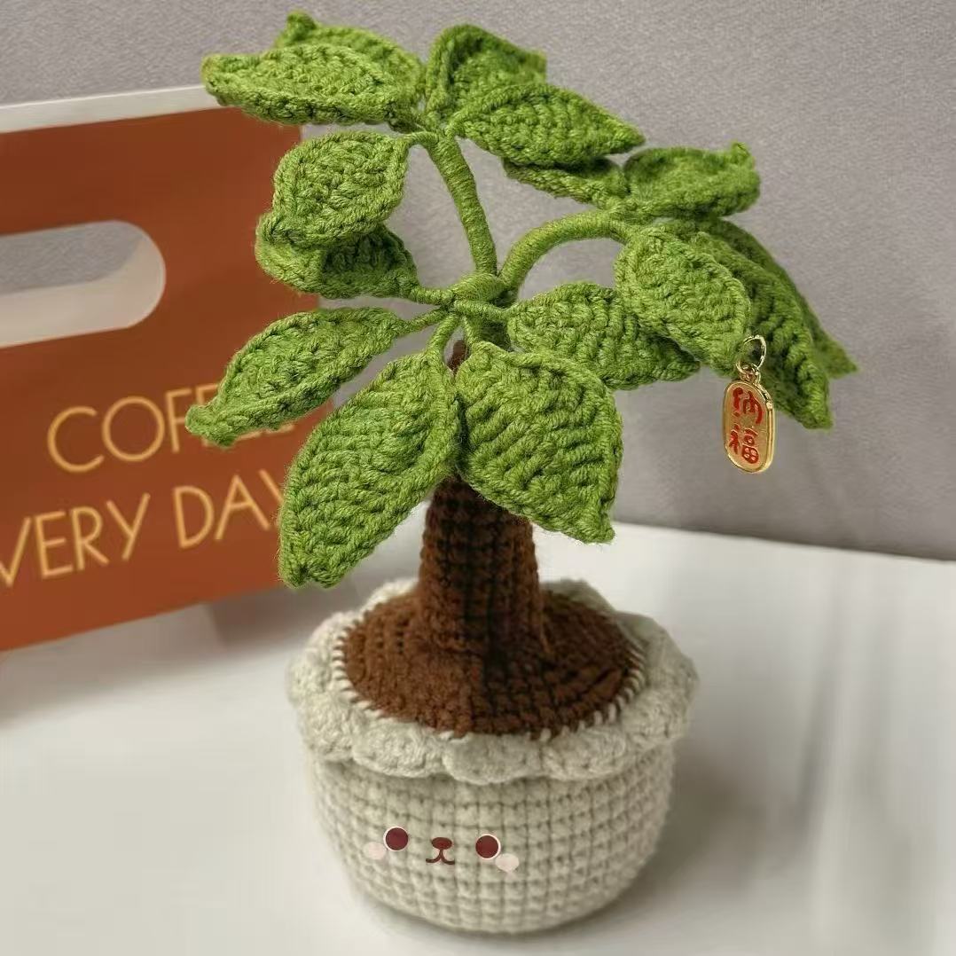 发财树diy材料包钩针编织前台摆件盆栽毛线针织桌面小摆件礼物