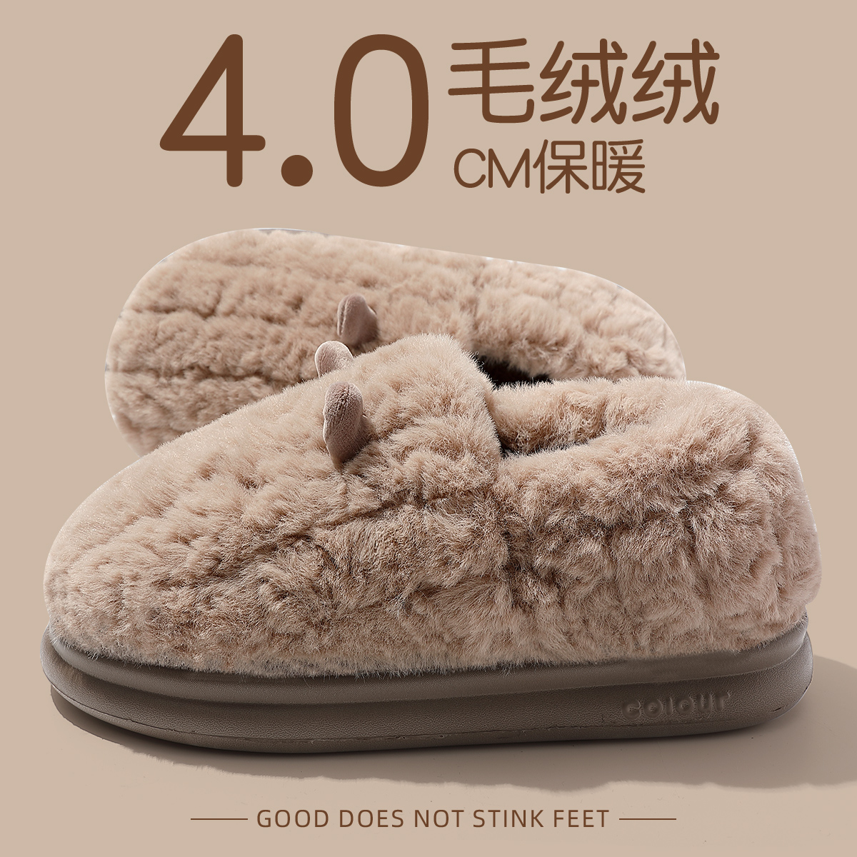 棉拖鞋男款包跟冬季2025新款居家室内加厚底防臭毛绒棉鞋女士外穿,浙江 金华