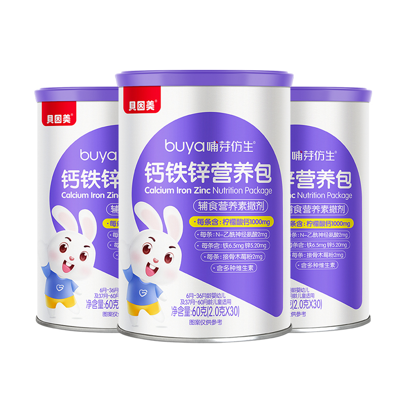 贝因美哺芽仿生钙铁锌营养包60克(2.0克*30)/罐*3罐儿童钙铁锌