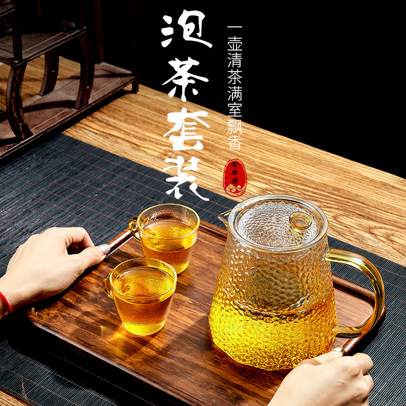 玻璃茶壶过滤泡茶壶家用耐高温加厚锤纹花茶电陶炉煮茶器茶具套装,安徽 滁州