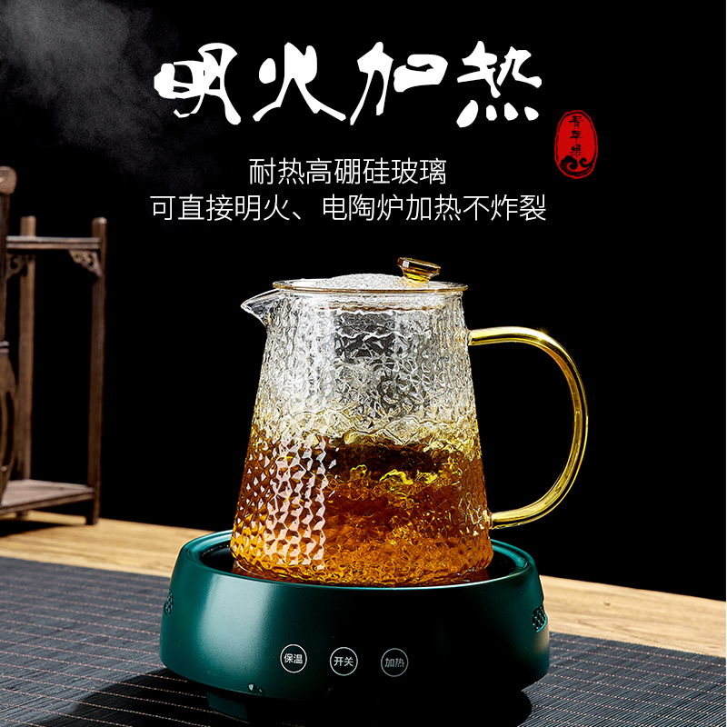 玻璃茶壶过滤泡茶壶家用耐高温加厚锤纹花茶电陶炉煮茶器茶具套装