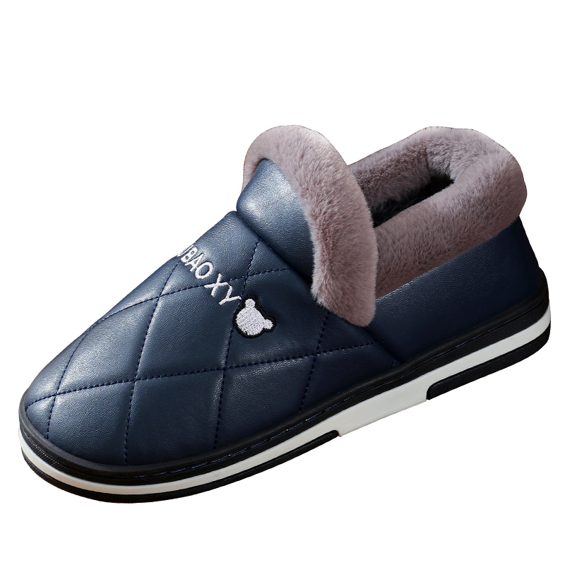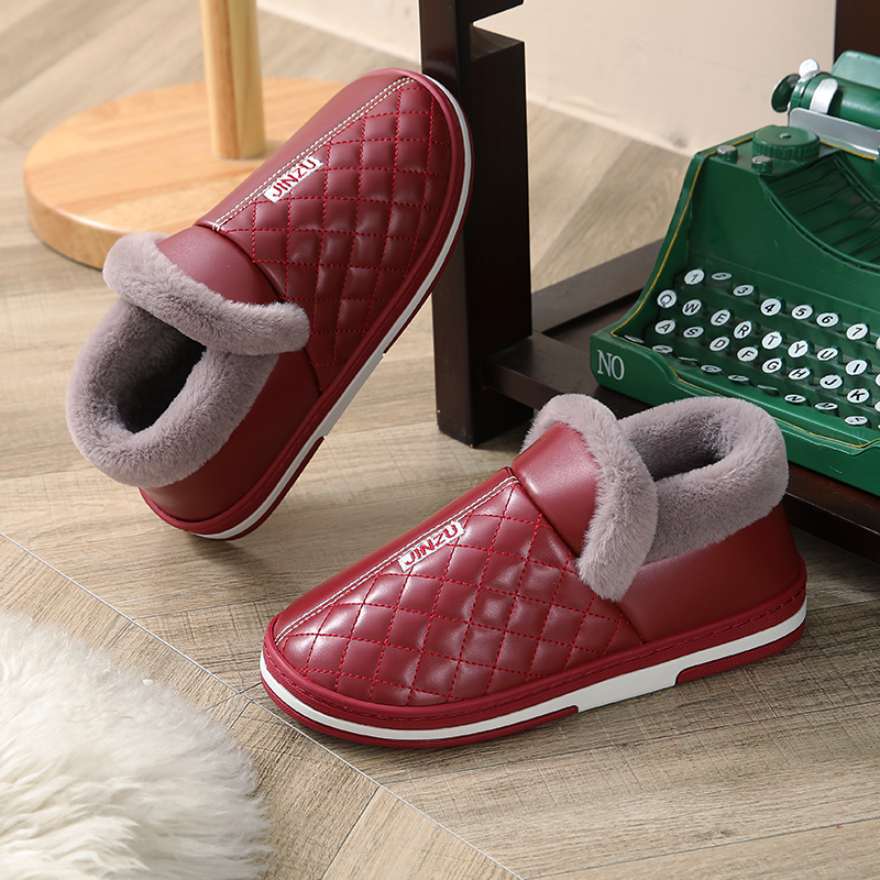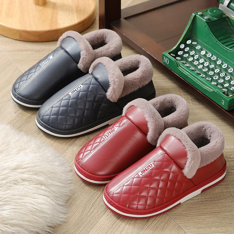 棉拖鞋女男士冬天室内居家用包跟防滑厚底防水皮面情侣带后跟棉鞋,河南 商丘