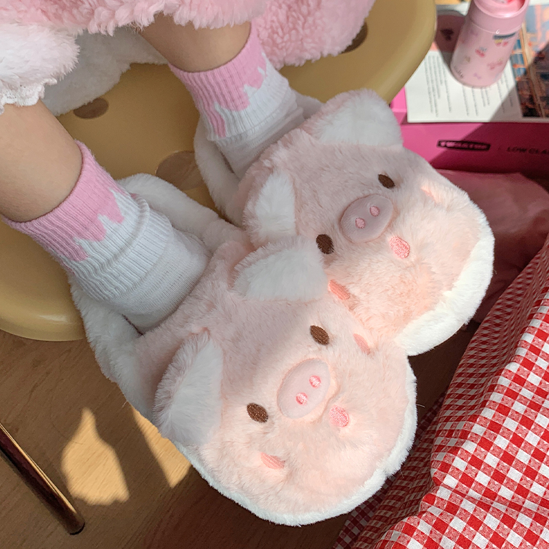 2024新款可爱小猪棉拖鞋女冬季外穿学生居家防滑保暖包跟棉鞋秋千,上海