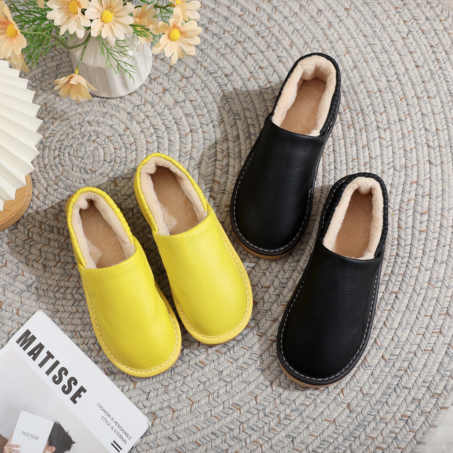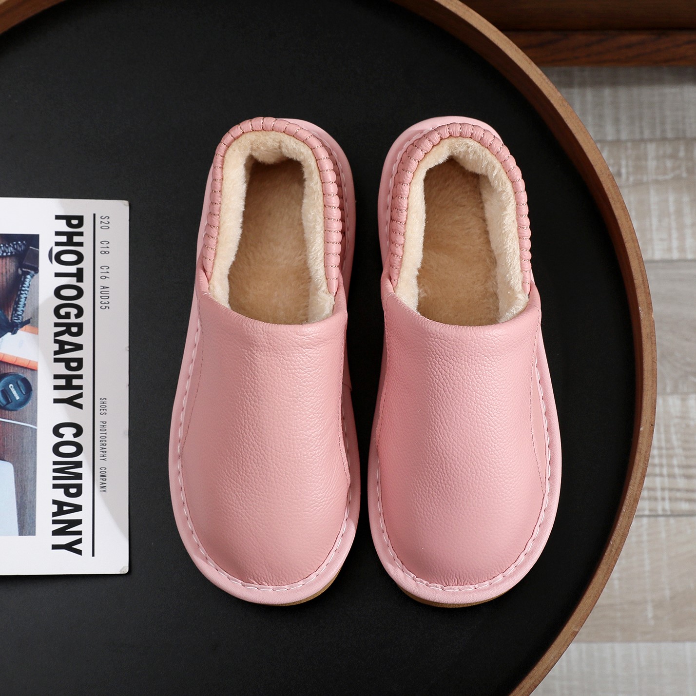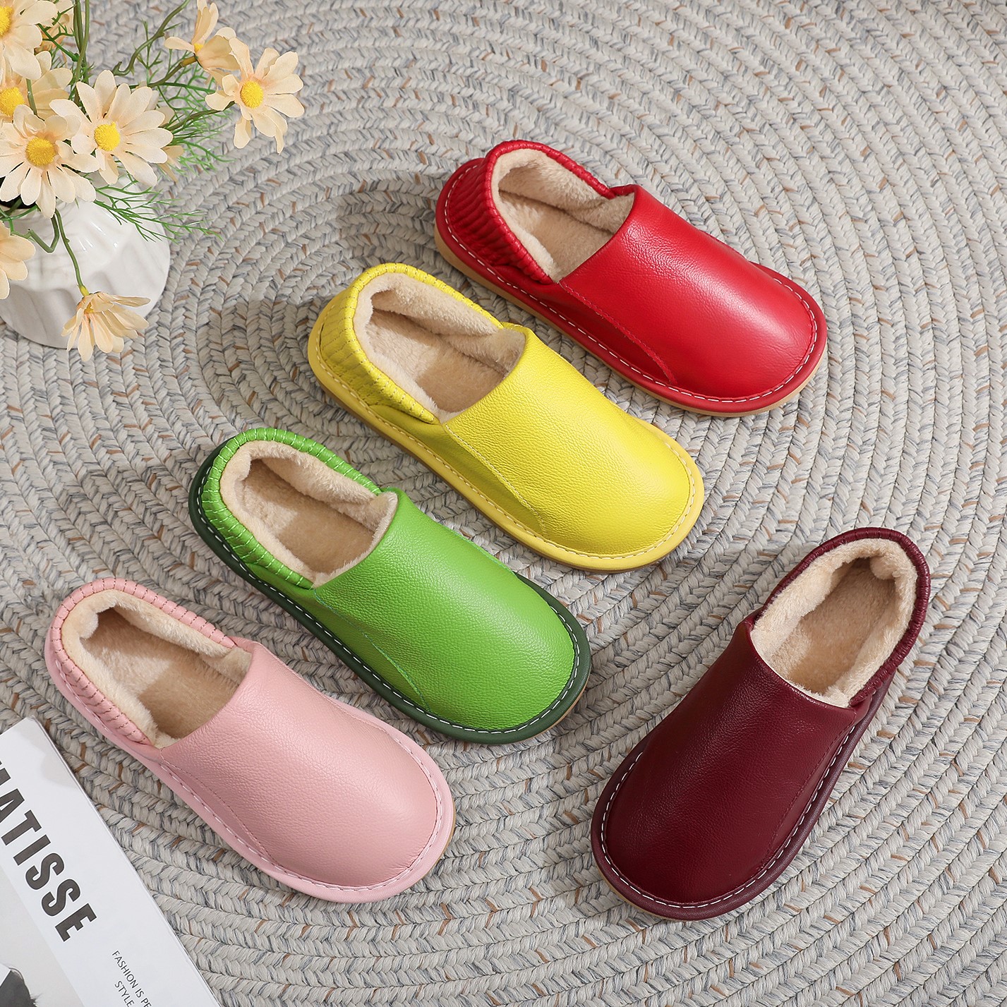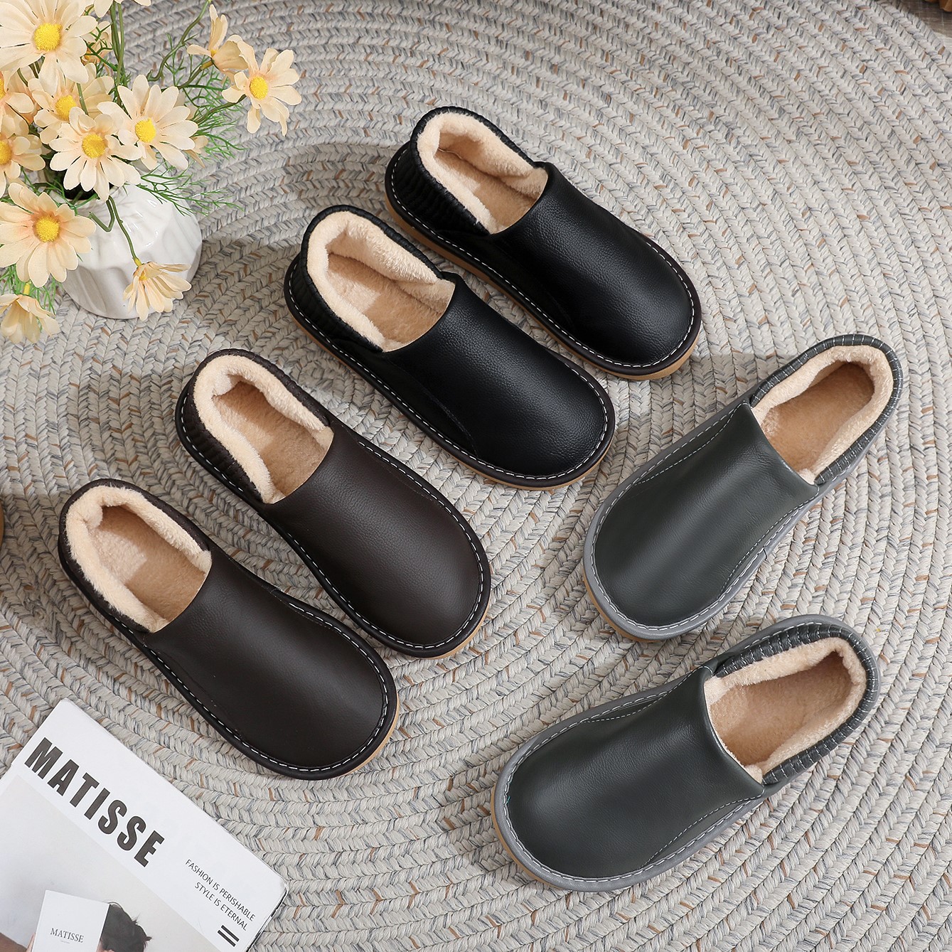秋冬季居家用真皮棉拖鞋男女室内防滑包跟情侣家居保暖牛皮面棉鞋,浙江 嘉兴