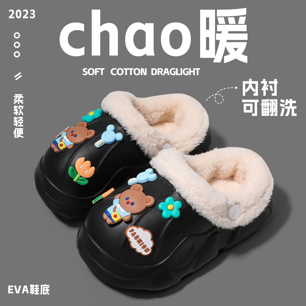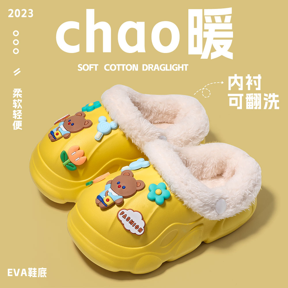儿童棉鞋女童秋冬季室内居家保暖防水防滑可拆卸亲子棉拖鞋男童冬,广东 湛江