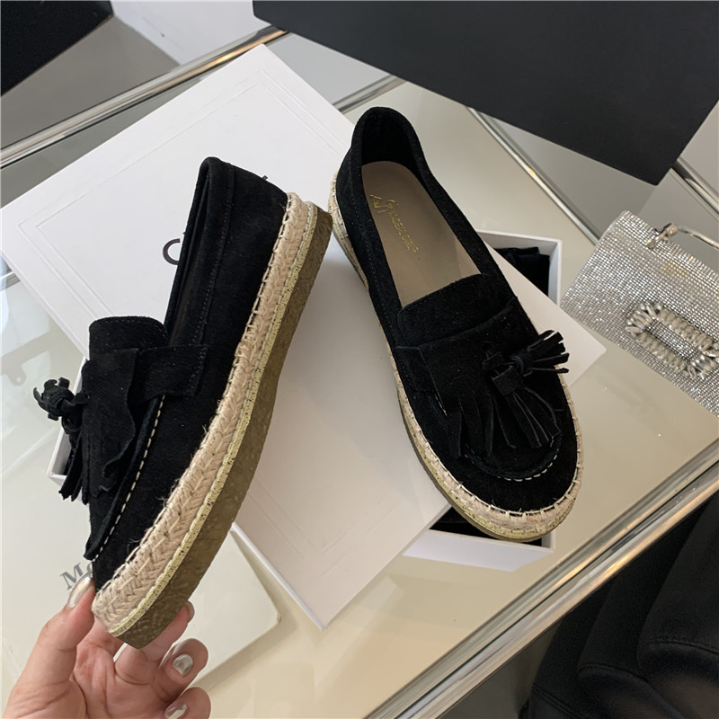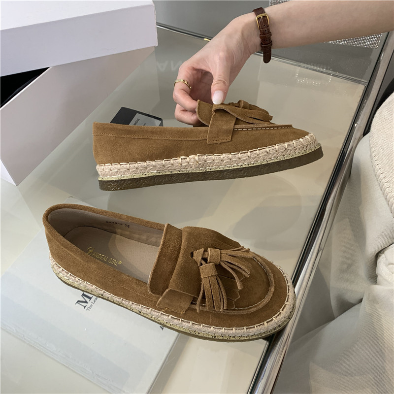 潮牌真皮厚底渔夫鞋2025春秋新款流苏圆头单鞋平底一脚蹬乐福鞋子,广东 广州