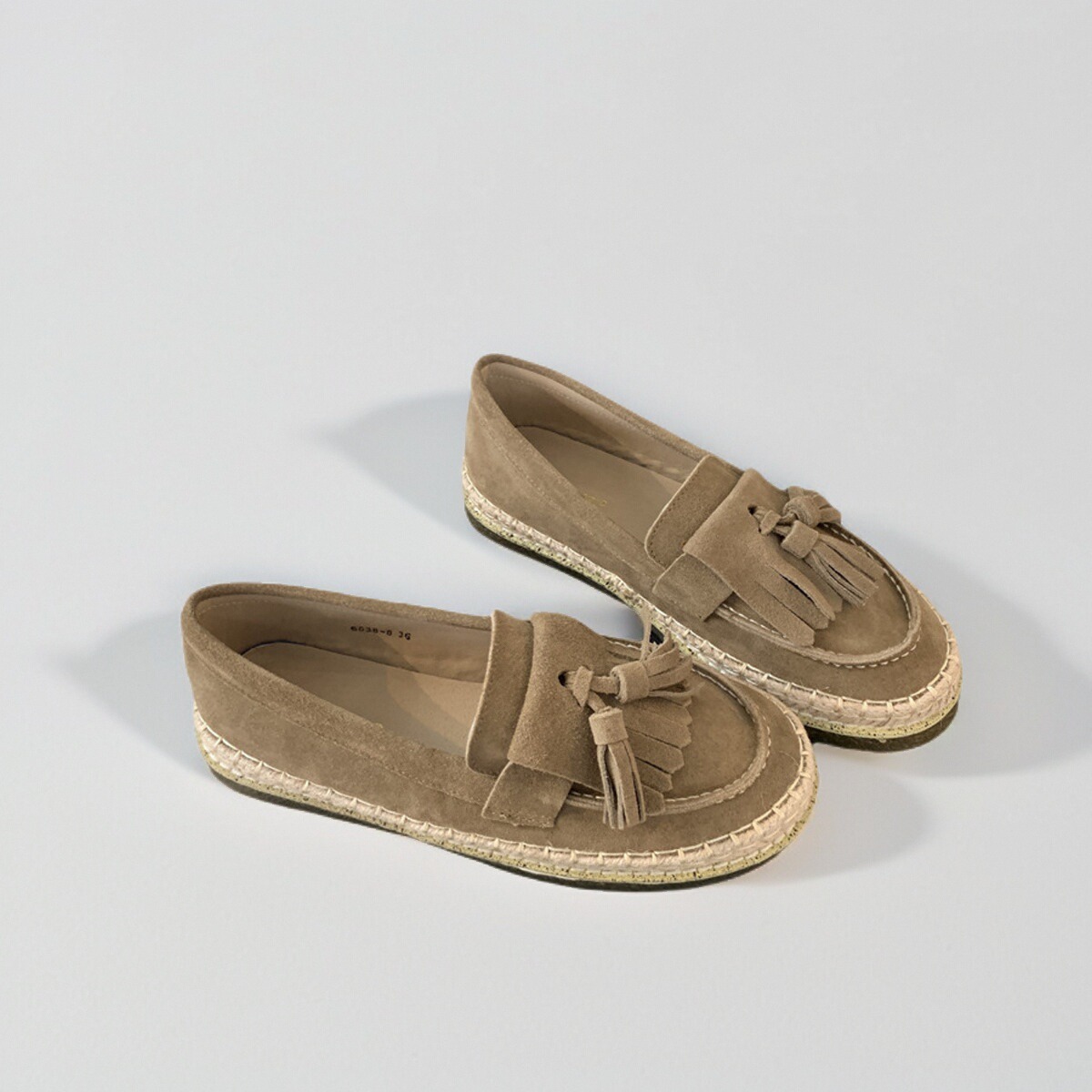 潮牌真皮厚底渔夫鞋2025春秋新款流苏圆头单鞋平底一脚蹬乐福鞋子