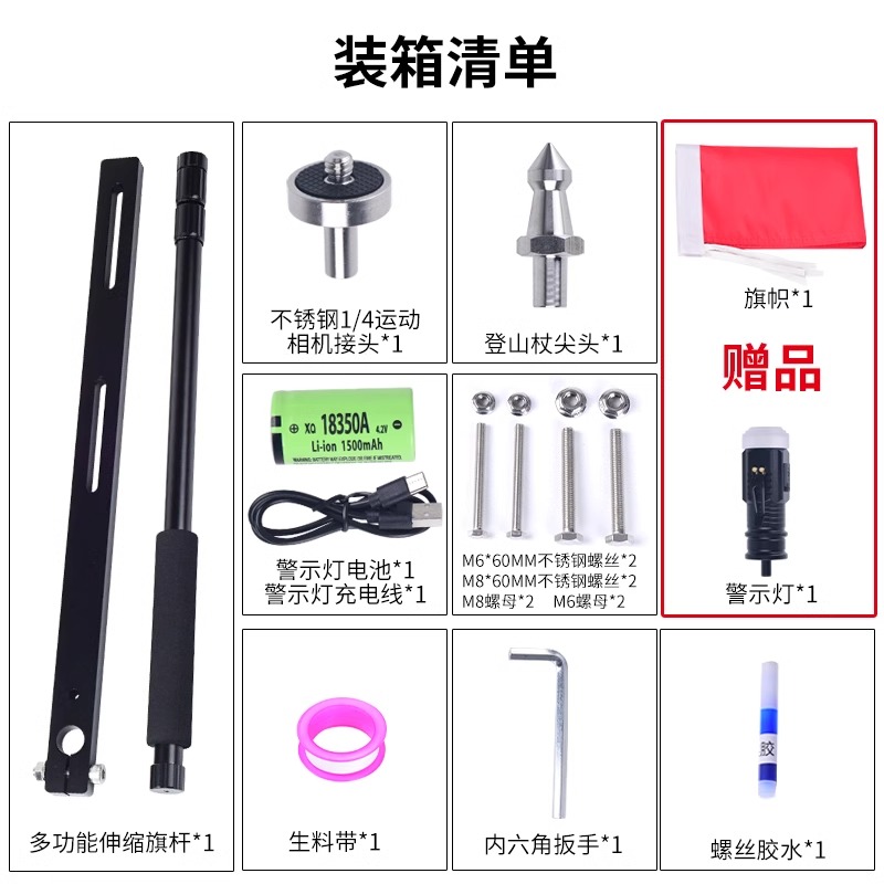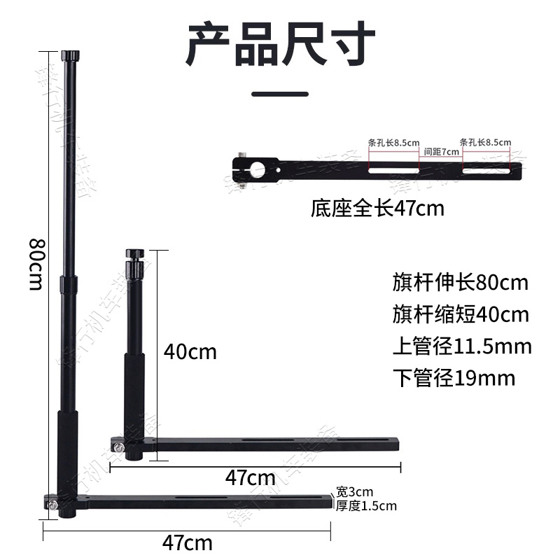 新款高视达摩托车伸缩旗杆乌鸦摩旅车载骑行装备加长加厚铝合金