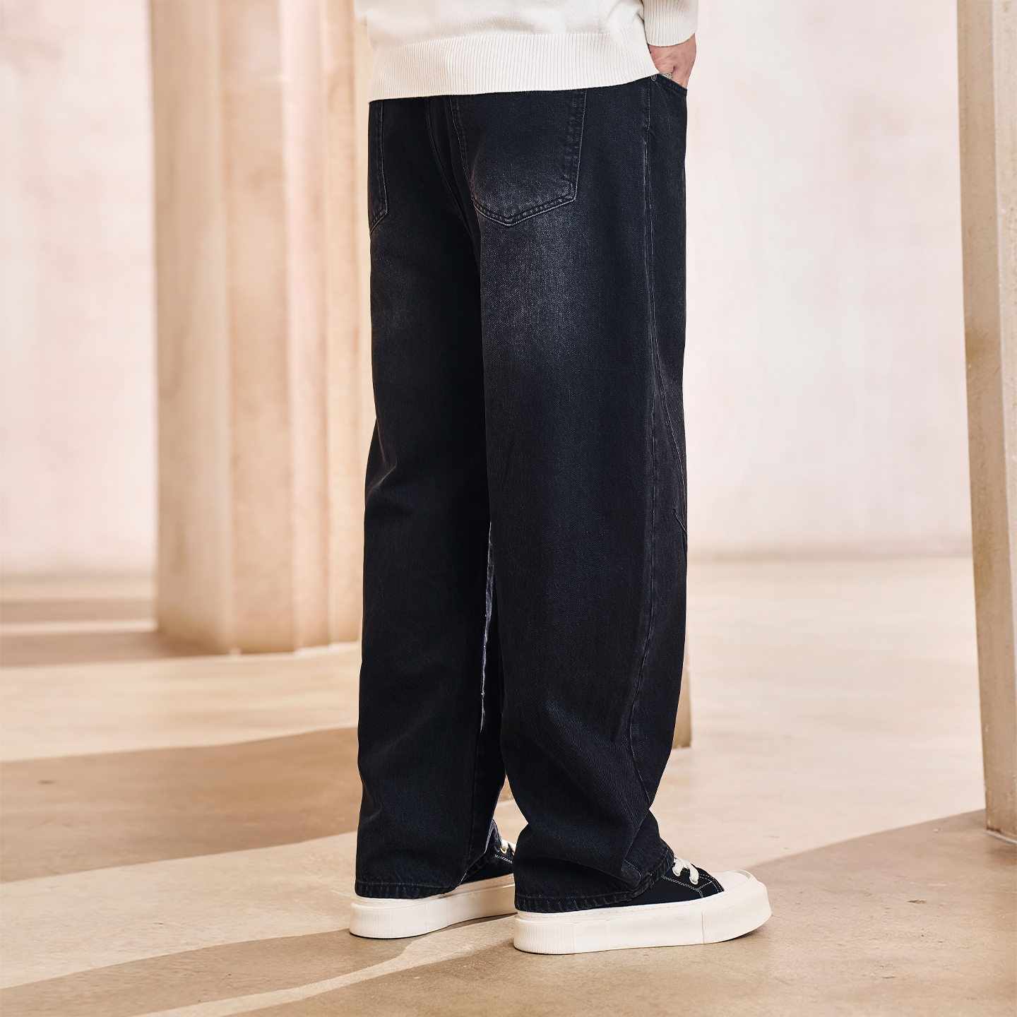 黑劲大码男装显瘦弯刀软牛仔裤秋冬季胖子加肥加大宽松水洗休闲裤
