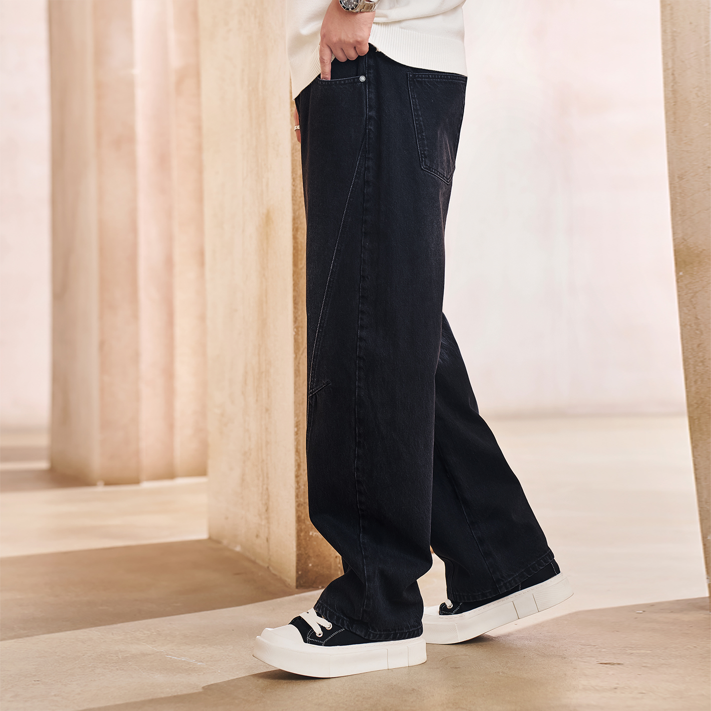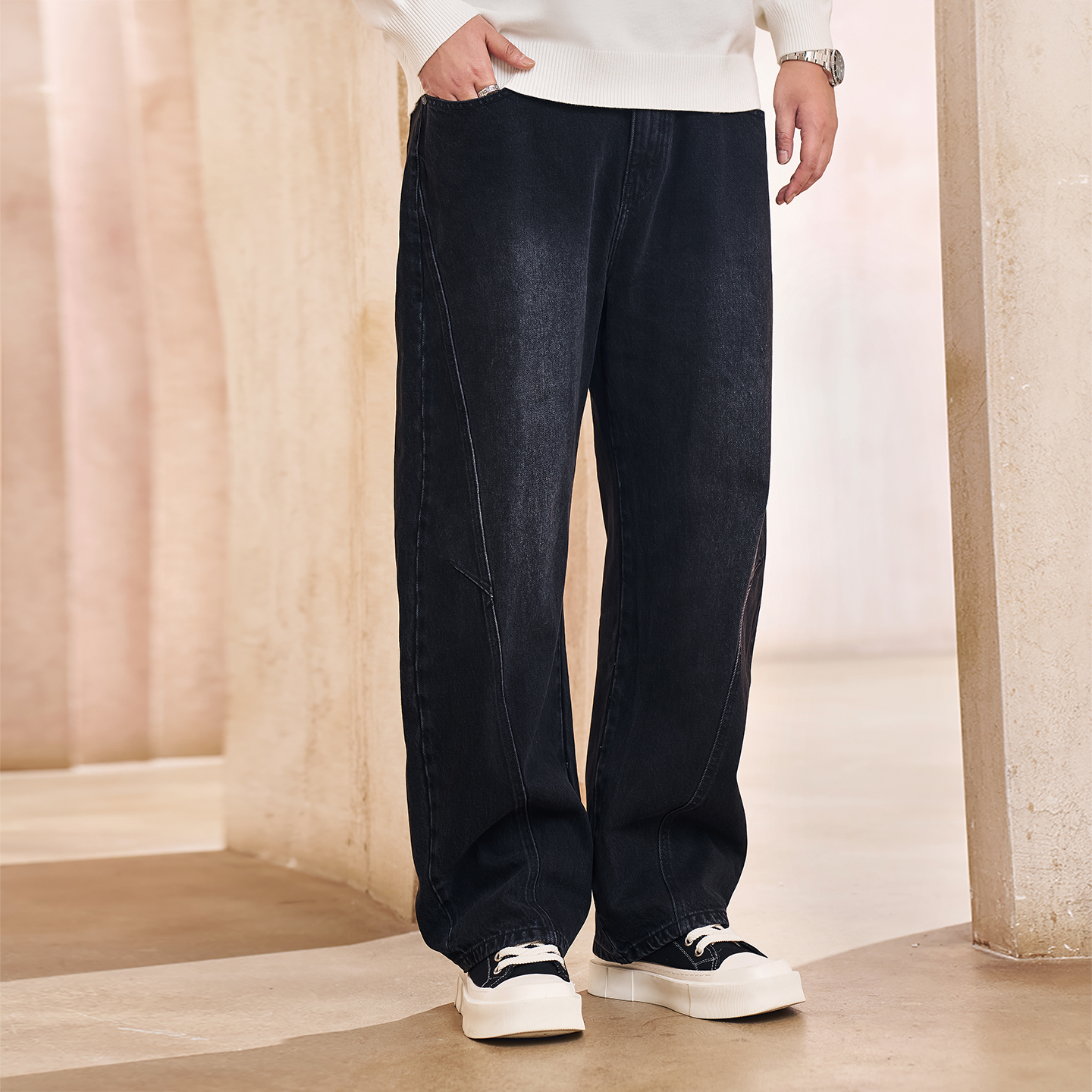 黑劲大码男装显瘦弯刀软牛仔裤秋冬季胖子加肥加大宽松水洗休闲裤,广东 广州