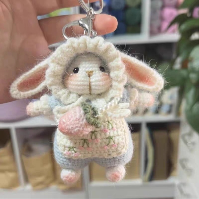糖糖兔玩偶手工钩织diy材料包毛线钩针可爱玩偶摆件挂件钥匙扣包