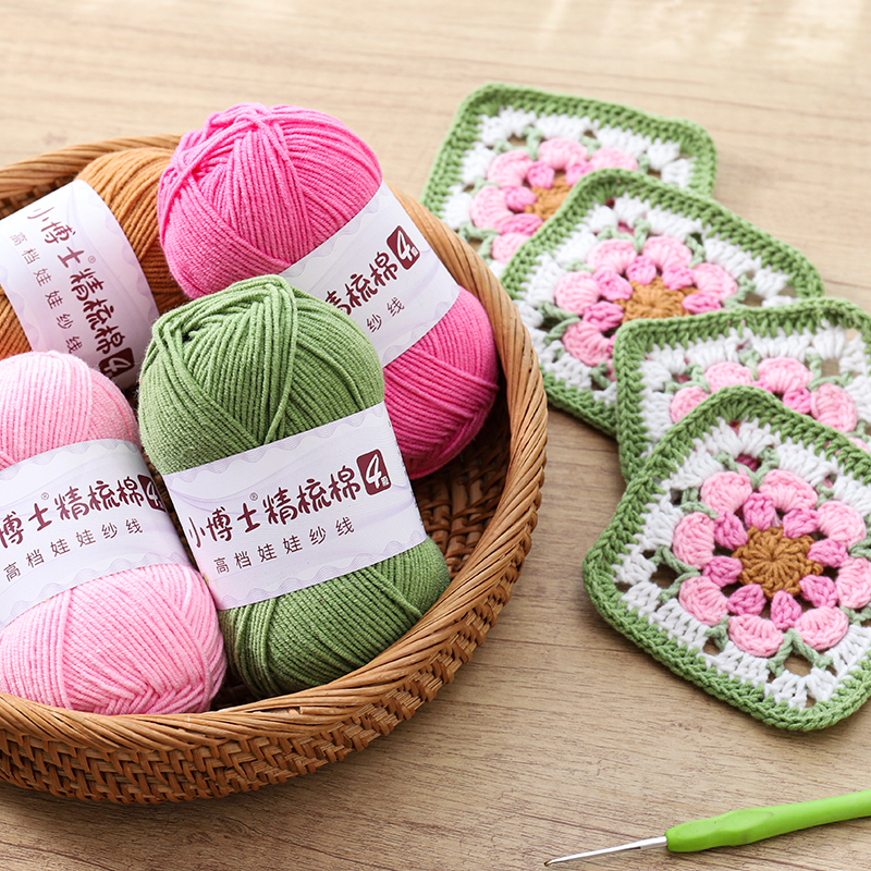 小博士4股精梳棉手工编织diy材料包毯子玩偶钩针毛线四股牛奶棉