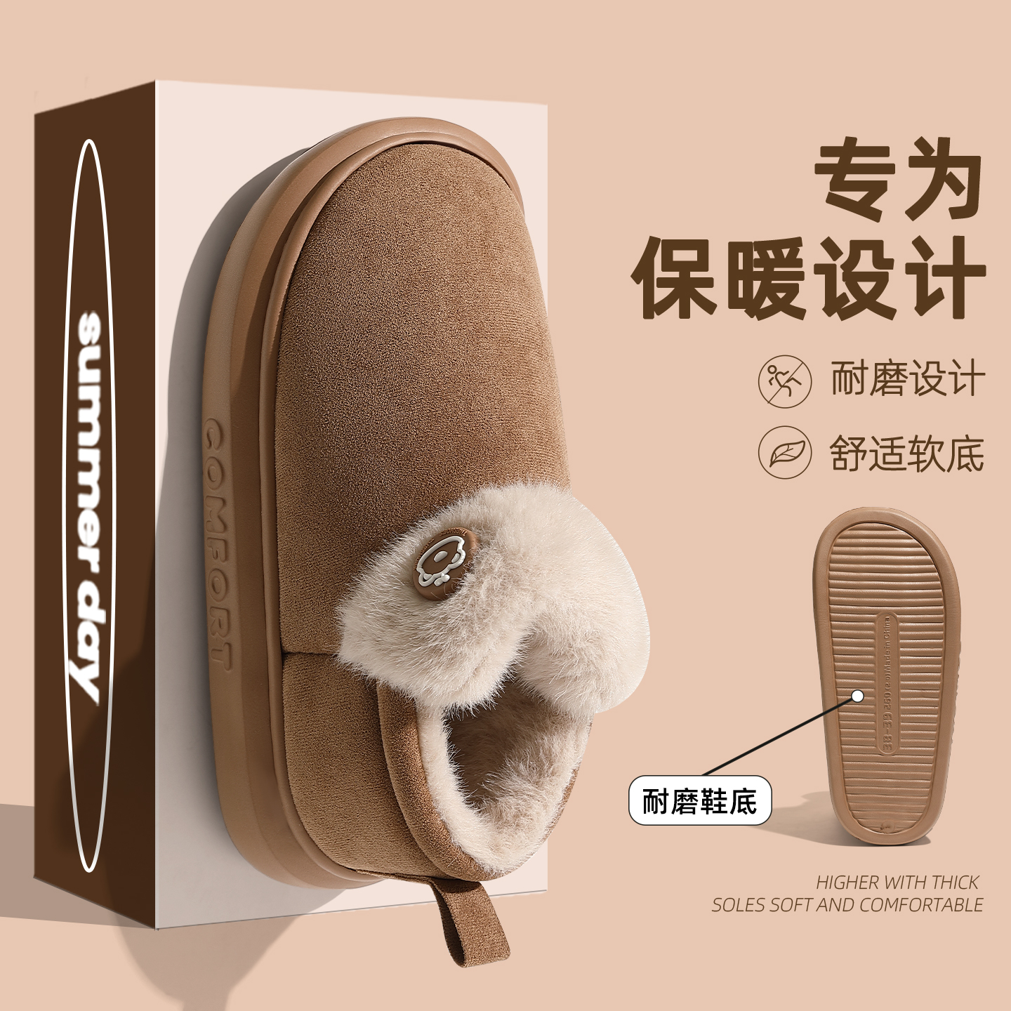 厚底棉拖鞋女款2025新款秋冬季居家高帮保暖加绒毛包跟棉鞋女外穿,浙江 金华