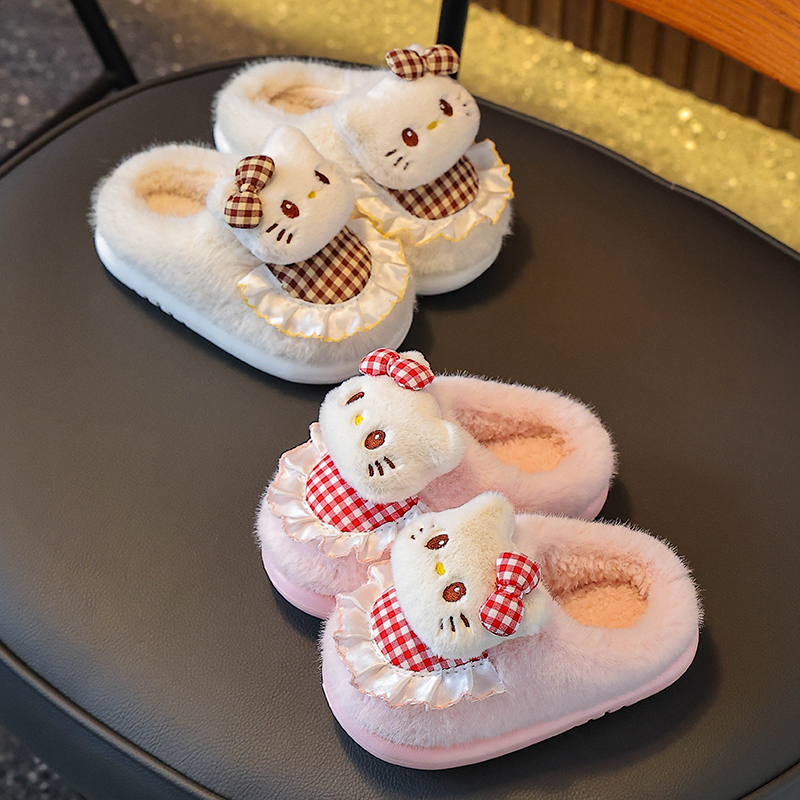 女童棉拖鞋冬季卡通可爱KT猫防滑室内软底亲子宝宝居家儿童棉鞋,浙江 丽水