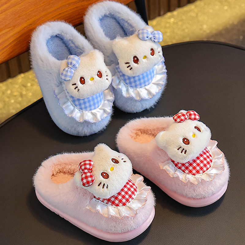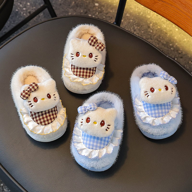 女童棉拖鞋冬季卡通可爱KT猫防滑室内软底亲子宝宝居家儿童棉鞋