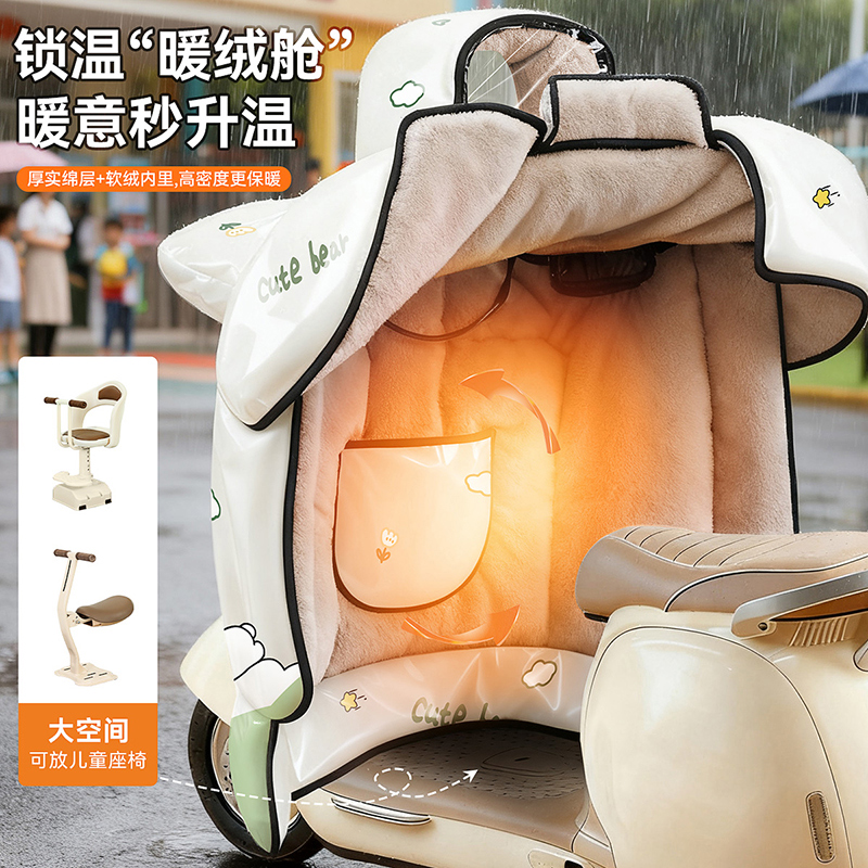 亲子儿童电动车挡风被冬防寒挡风罩摩托电瓶新款防水加厚四季通用,浙江 金华