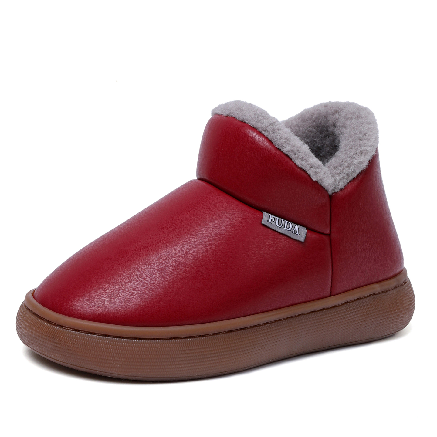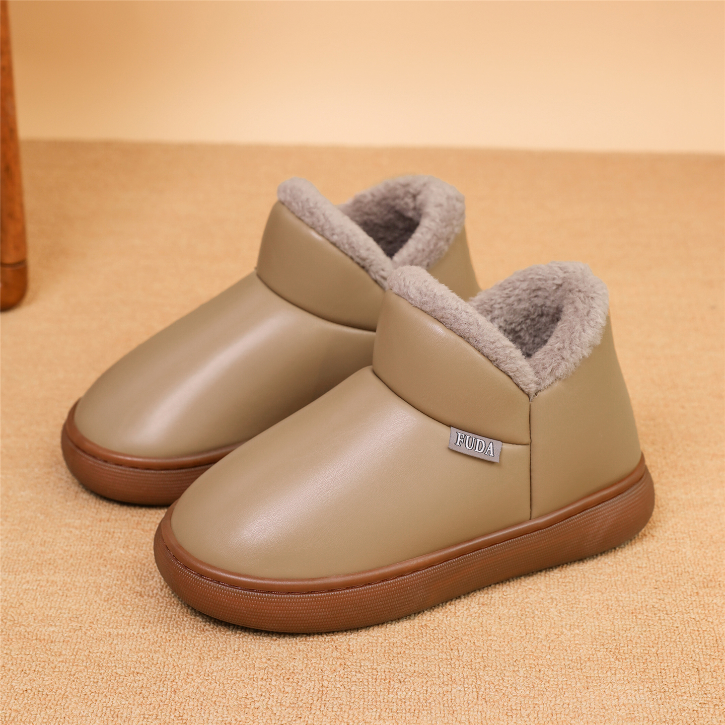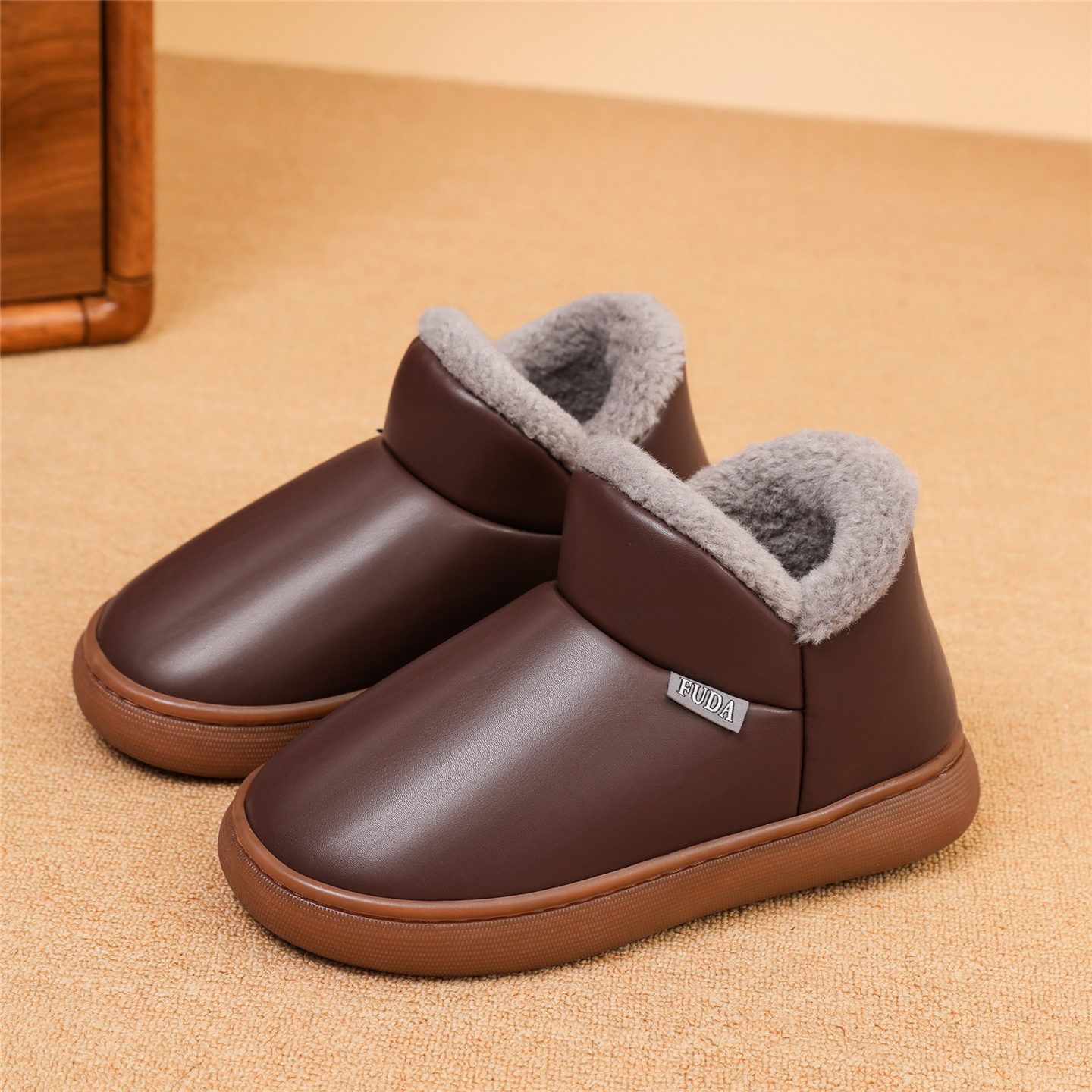 冬季加绒加厚包跟棉拖鞋男女款防水皮面居家外穿防滑厚底保暖棉鞋,四川 成都
