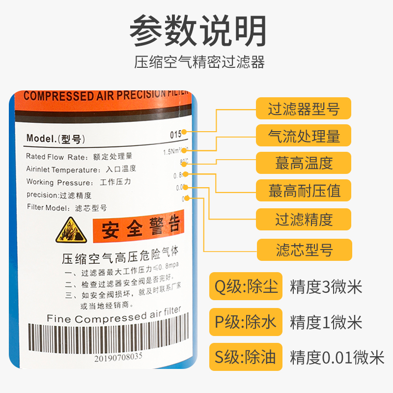玉豹螺杆机空压机精密过滤器压缩空气配件冷干机干燥除油水分离器,浙江 台州