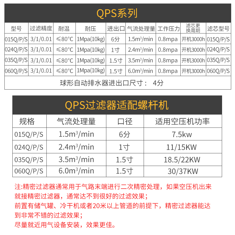 玉豹螺杆机空压机精密过滤器压缩空气配件冷干机干燥除油水分离器