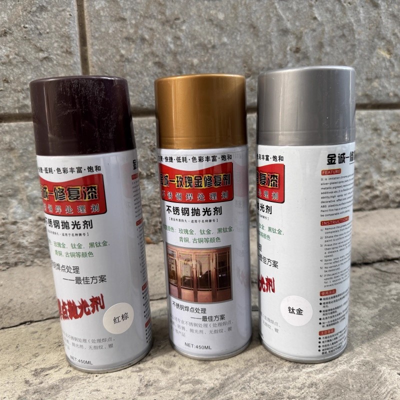 金诚金属彩色油漆不锈钢焊点处理液焊道处理剂手摇自动喷漆优质银,广东 佛山