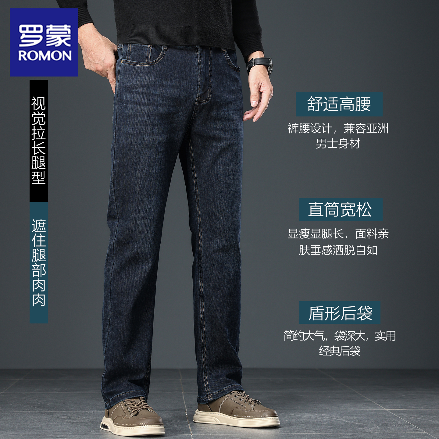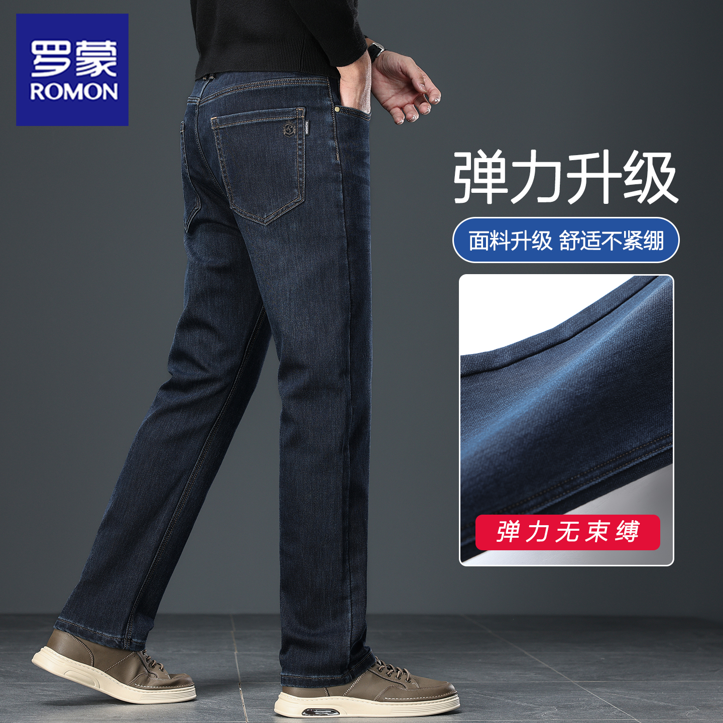 罗蒙秋冬新款加绒加厚牛仔裤男士宽松直筒弹力高腰深裆爸爸装商务,广东 广州