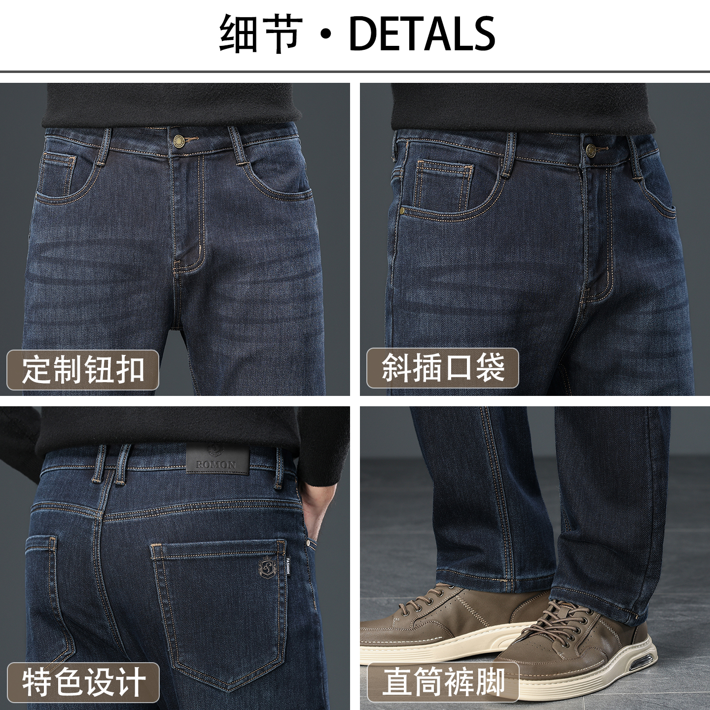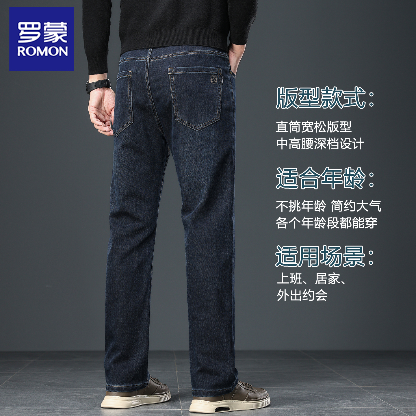 罗蒙秋冬新款加绒加厚牛仔裤男士宽松直筒弹力高腰深裆爸爸装商务