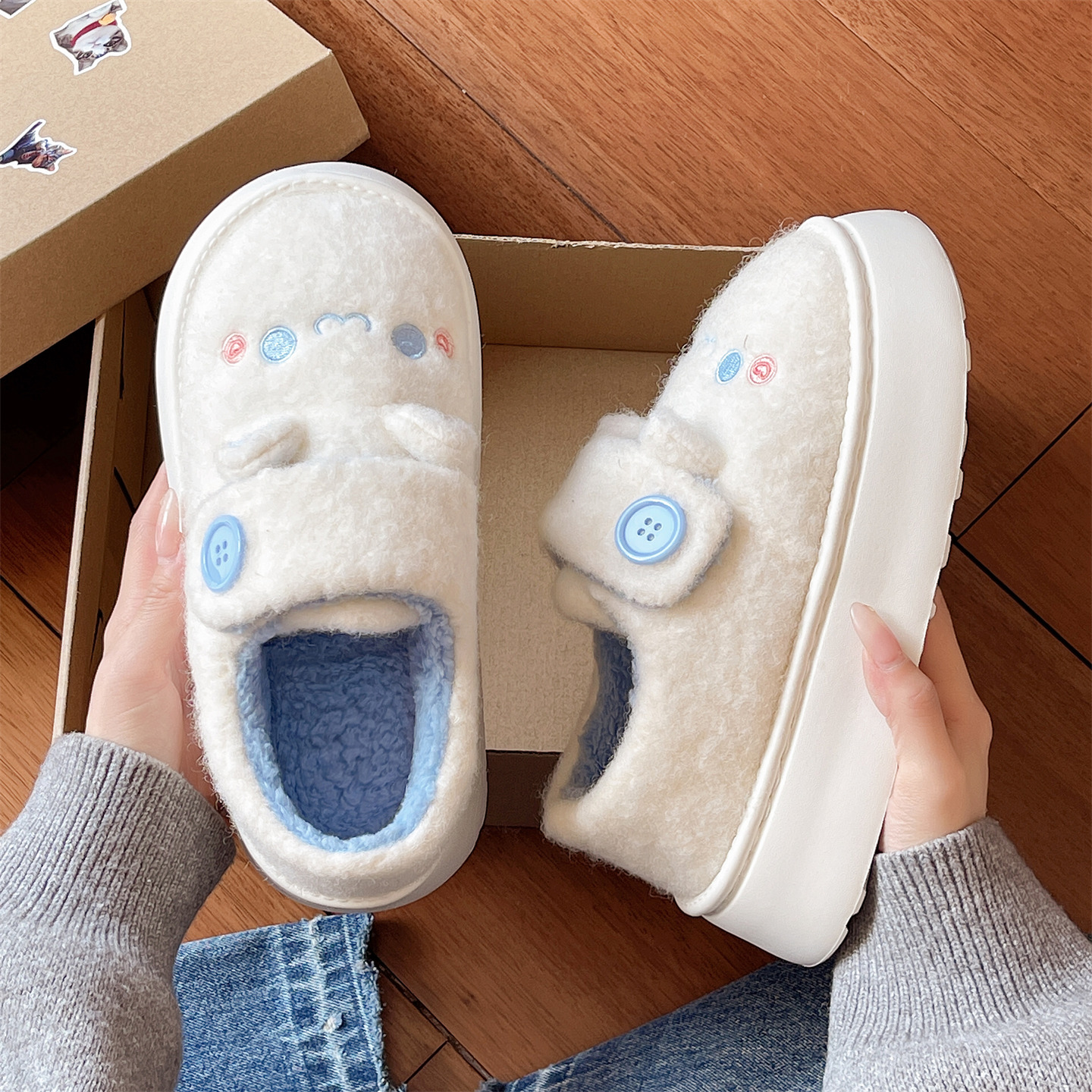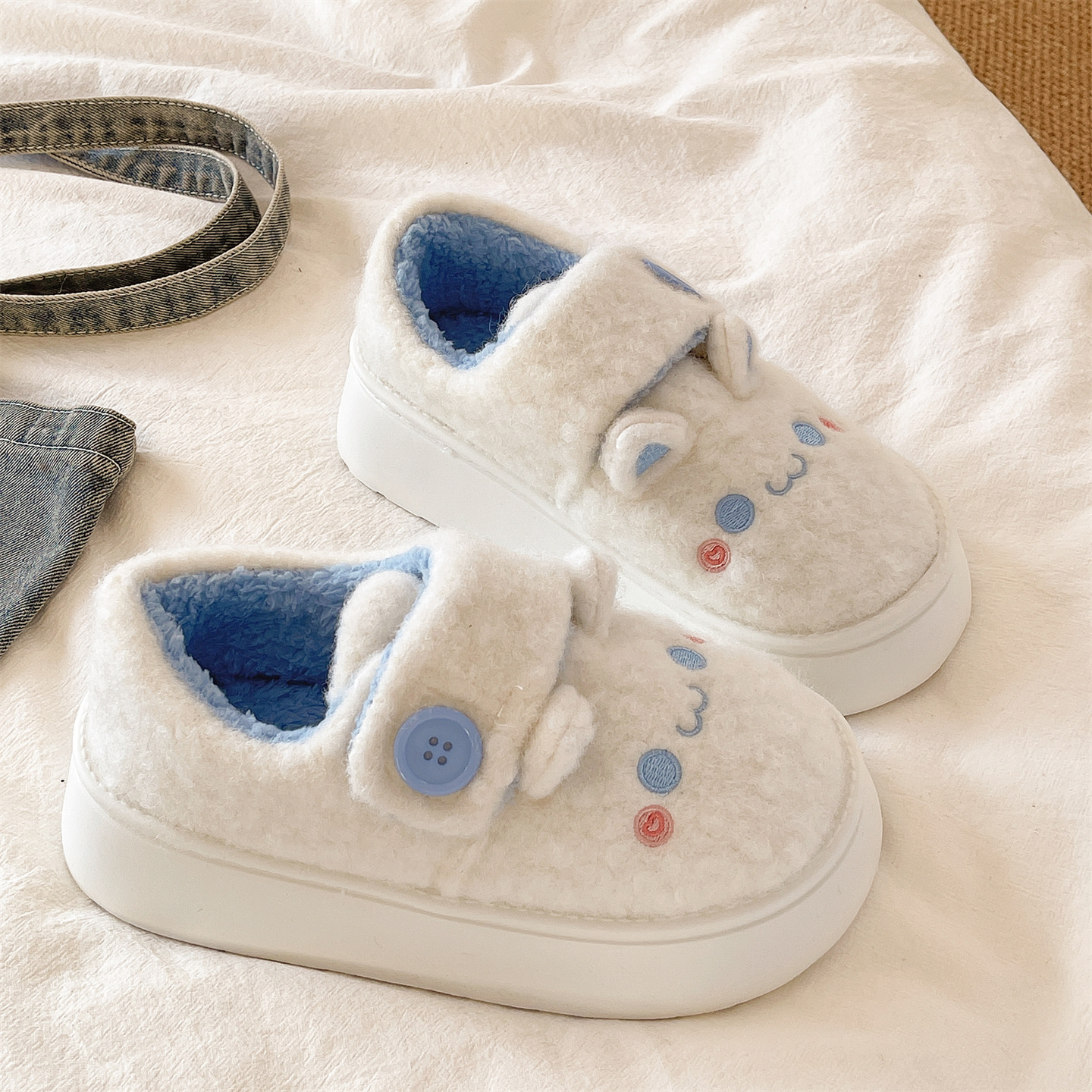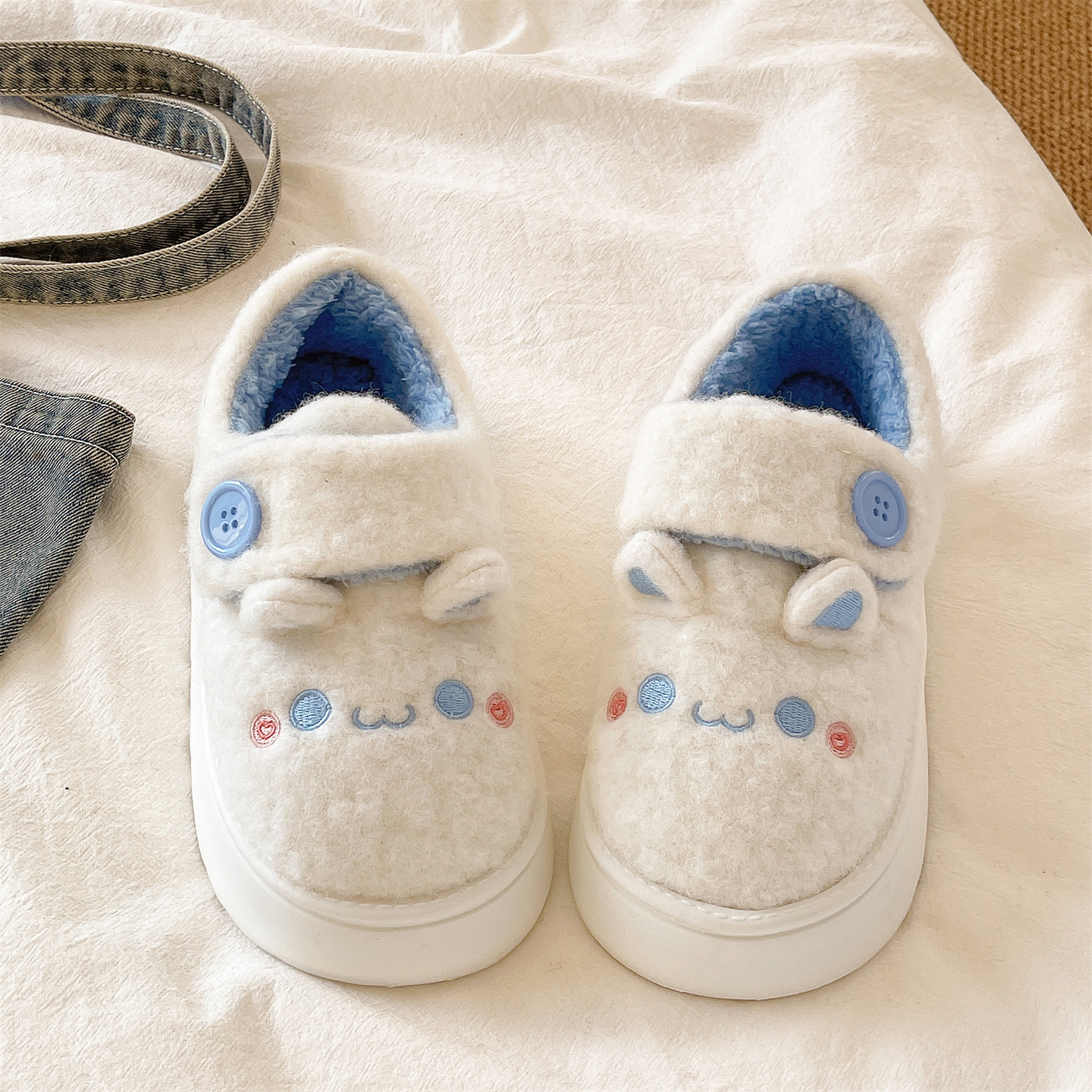 可爱兔子魔术贴棉鞋女冬季少女心防滑外穿居家保暖加绒包跟棉拖鞋,浙江 宁波